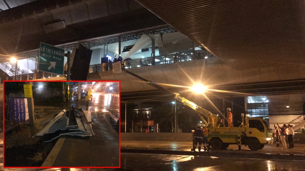ฝนตก ลมแรง ซัดฝ้าอลูมิเนียม หลังคารถไฟฟ้าสายสีม่วง สถานีบางรักใหญ่ ร่วง บางส่วนตกลงมาที่ถนนด้านล่าง โชคดีไม่มีใครได้รับบาดเจ็บ เร่งซ่อมคาดเสร็จเช้านี้ (29 ก.ย.) ...