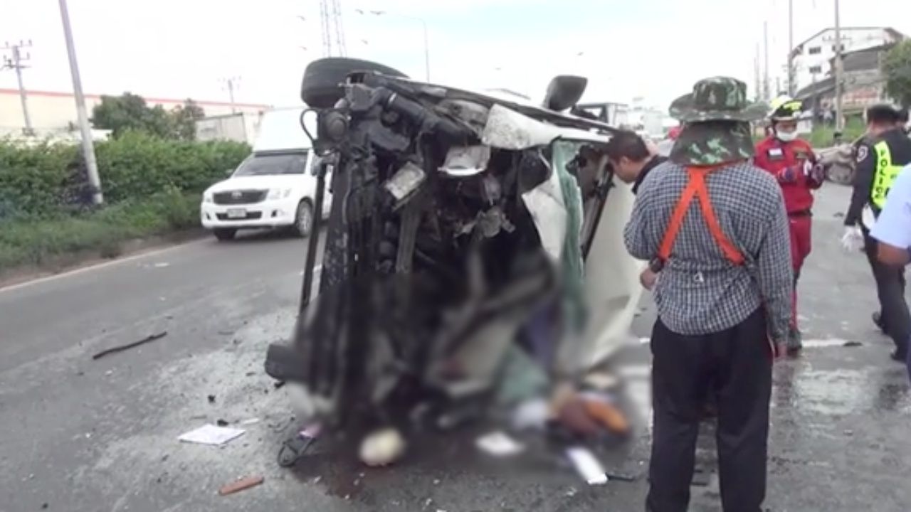 หญิงวัย 50 ปี ขับกระบะพุ่งข้ามเกาะกลางถนน ชนประสานงารถตู้รับ – ส่งพนักงาน บริเวณบายพาสเลี่ยงเมืองชลบุรี ขาเข้าพัทยา ทำให้มีผู้เสียชีวิต 1 ราย เจ็บ 10 คน ในจำนวนนี้สาหัส 4 ราย...