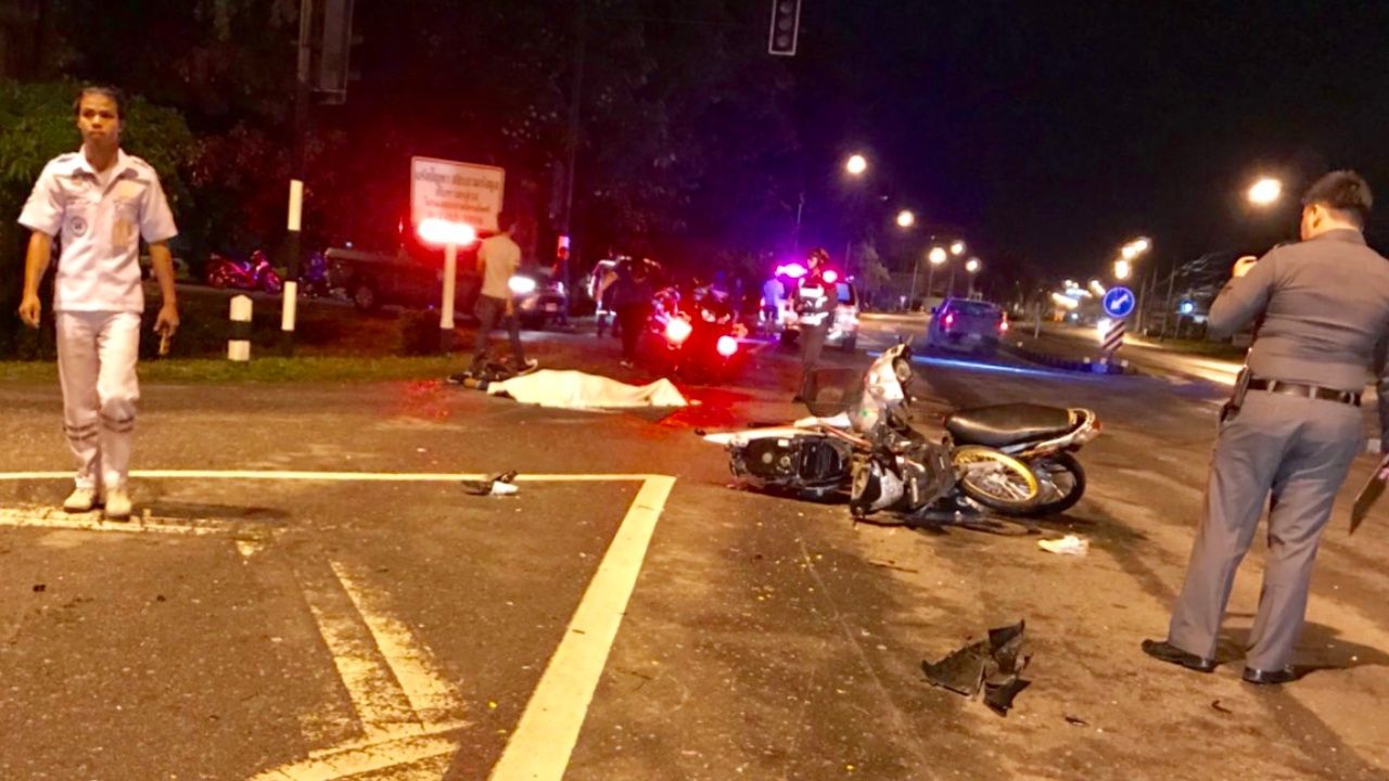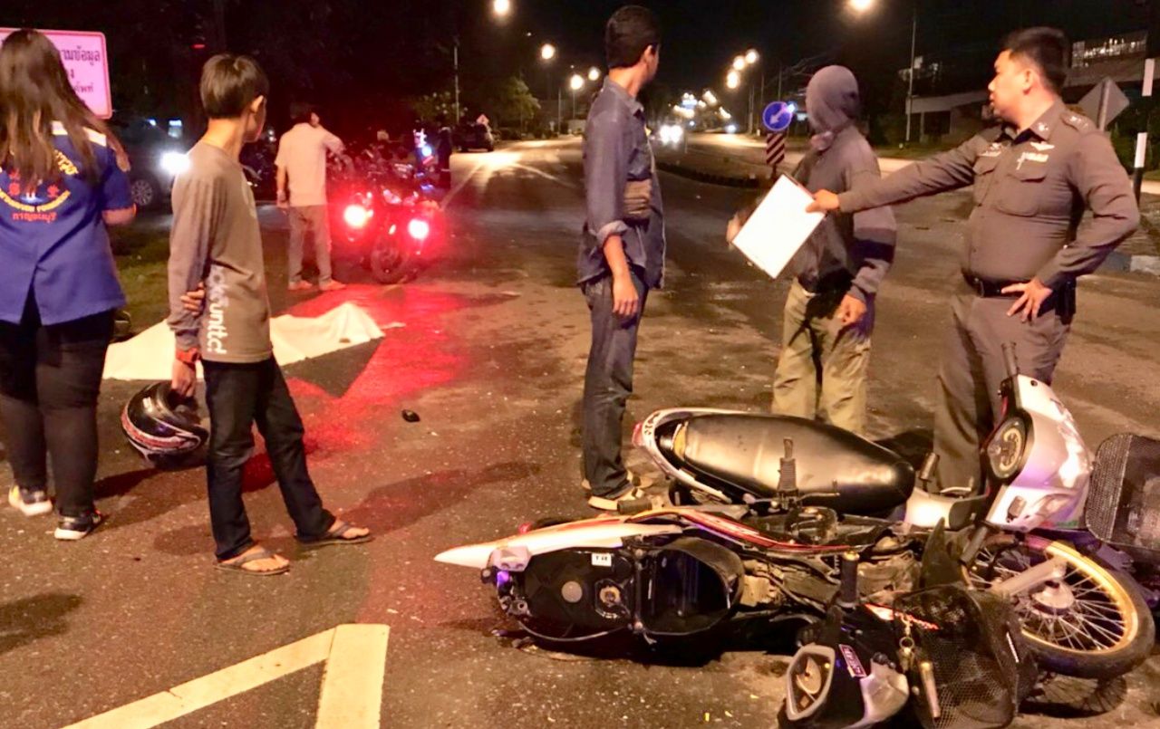 เวลา 02.45 น. วันที่ 5 ต.ค.60 ร.ต.อ.วัชระ ทองดอนโพธิ์ รองสารวัตร (สอบสวน) สภ.ท่าม่วง จ.กาญจนบุรี ได้รับแจ้งจากศูนย์วิทยุมูลนิธิมิราเคิลออฟไลฟ์ประจำจังหวัดกาญจนบุรี ว่าเกิดเหตุรถจักรยานยนต์เฉี่ยวกันหลายคัน มีผู้ได้รับบาดเจ็บและเสียชีวิตหลายราย เหตุเกิดบนถนนแสงชูโต ช่วงท่าม่วง-กาญจนบุรี หมู่ 4 ต.ท่าม่วง