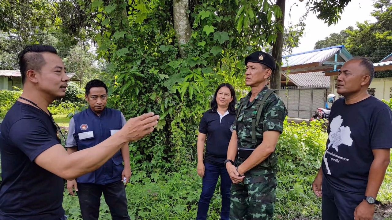 ผู้สื่อข่าวลงพื้นที่ตรวจสอบพบเส้นทางดังกล่าว เป็นถนนคอนกรีตแยกออกจากถนนภายในหมู่บ้านในลุ่มประมาณ 100 เมตร ต้นทางตั้งเสาปูนติดตั้งประตูเหล็กขนาดใหญ่ ปลายทางสุดที่ประตูทางเข้าที่ทำการผู้ใหญ่บ้าน หมู่ 8 ซึ่งเป็นบ้านนางลัดดา ซ้ายมือก่อนถึงประตูบ้านมีการตั้งเสากั้นลวดหนาม และนำกระสอบทรายจำนวนมาก ตั้งสูงประมาณ 1 เมตร ปิดทางต่อเชื่อมเข้าไปยังบ้านมารดานายอธิป ซึ่งพิการตาบอด และบ้านหลังใหญ่ด้านหลังซึ่งมีผู้อาศัยกว่า 10 คน สุดถนนขวามือมีร่องรอยการใช้ดินถมกั้นทางต่อเชื่อมไปยังบ้านอีก 2 หลัง แต่ถูกรื้อถอนออกแล้ว