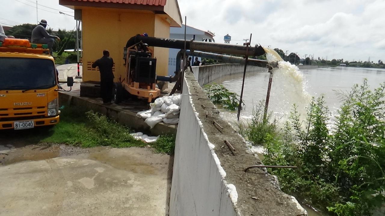 ด้าน นายทะนงศักดิ์ ศรีวิเชียร ปลัดเทศบาลเมืองอ่างทอง กล่าวว่า ในช่วงนี้น้ำเพิ่มสูงขึ้นอย่างต่อเนื่อง ทางผู้บริหารสมาชิกสภาเทศบาลและเจ้าหน้าที่ได้ทำการประชุมวางแผนแก้ไขป้องกันเบื้องต้น ได้ออกสำรวจแนวน้ำรั่วซึมกำแพงกั้นน้ำตลอด 2 ฝั่งแม่น้ำเจ้าพระยา เตรียมนำแบร์ริเออร์และกระสอบทรายมาวางกั้น เพื่อเสริมความแข็งแรงทั้ง 2 ฝั่งแม่น้ำเจ้าพระยา พร้อมทั้งเร่งทำการสูบระบายน้ำที่รั่วซึมออกเพื่อป้องกันเขตศูนย์ราชการและย่านธุรกิจการค้า ส่วนต้นก้ามปูอายุกว่า 100 ปีที่หักโค่นริมเขื่อน ขวางถนนนั้น ทางเจ้าหน้าที่เร่งดำเนินการตัดออกแล้วเพื่อความสะดวดปลอดภัยในการเดินทางของประชาชน