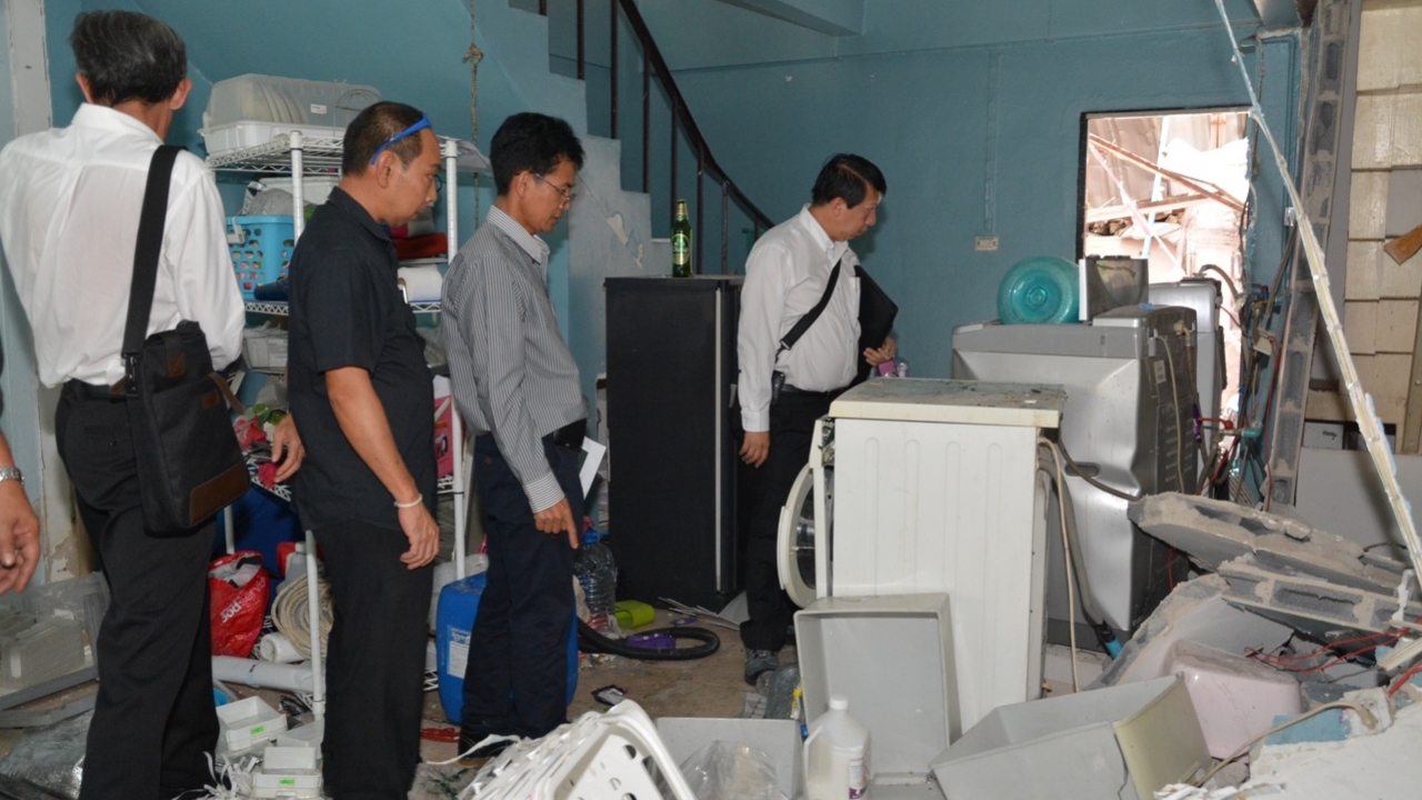 ต่อมา เมื่อเวลา 14.00 น. วันที่ 10 ต.ค. พ.ต.อ.ศุภชัย ไตรสมบูรณ์ ผกก.กลุ่มงานพิสูจน์หลักฐาน (พฐ.) ภ.จว.นนทบุรี พ.ต.ท.ยศวิน เอี่ยมพุ่ม รอง ผกก.(งานสอบสวน) สภ.ปากเกร็ด พร้อมด้วย นายธันวา บำเพ็ญทาน นักวิชาชำนาญการพิเศษ สำนักงานผลิตภัณฑ์มาตรฐานอุตสาหกรรม (สมอ.) นำเจ้าหน้าที่เข้าตรวจสอบที่เกิดเหตุเพื่อหาหลักฐาน โดยทางเจ้าหน้าที่ได้ตรวจสอบอย่างละเอียด ใช้เวลาราว 1 ชม.