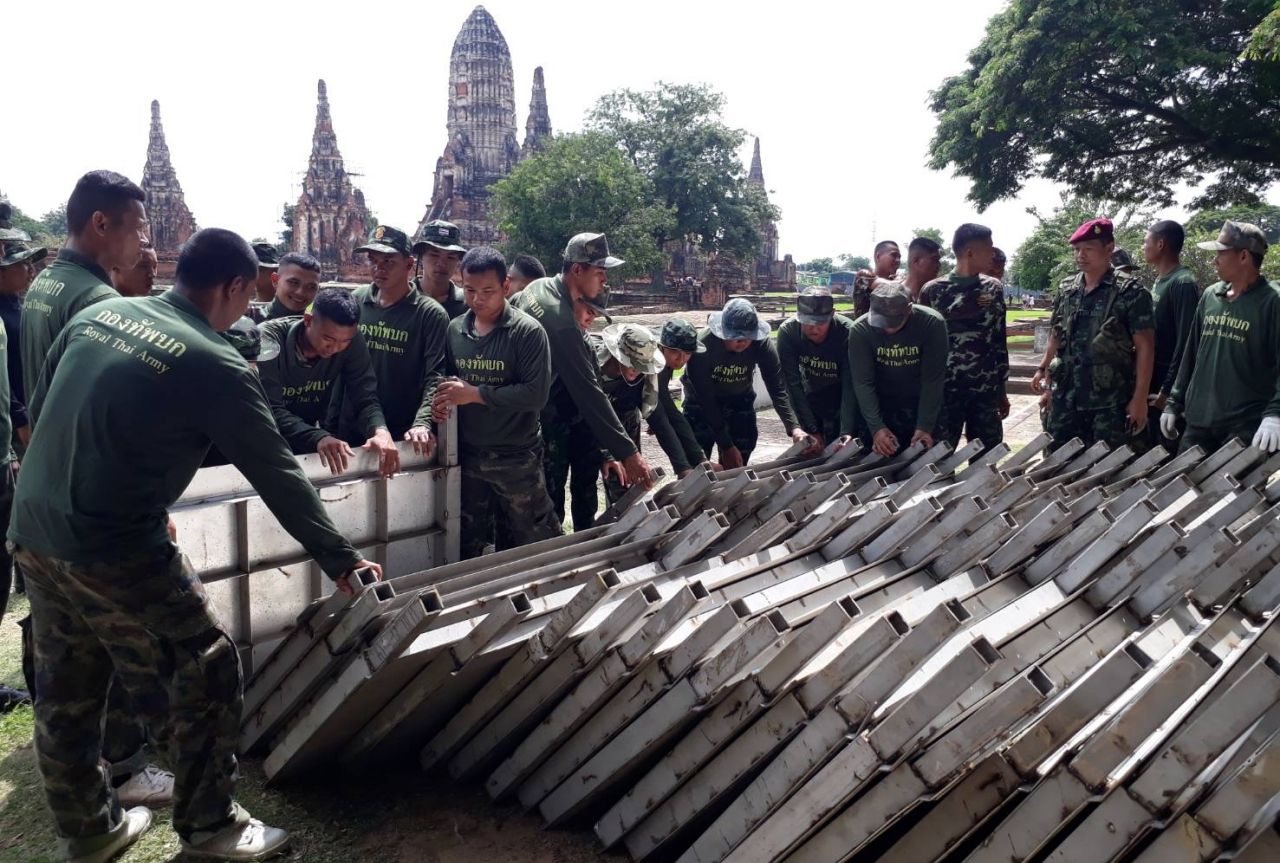 หวั่นน้ำท่วมขึ้นสูง!! กรมศิลปากร สั่งเพิ่มแผงกั้นป้องกันน้ำท่วมขึ้นอีก 1 เมตร เป็นสูง 2.60 เมตร เพื่อเฝ้าระวังหลังอุทยานฯ และป้องกันวัดไชยวัฒนาราม ให้ได้ ขณะที่สถานการณ์น้ำท่วมอยุธยายังน่าห่วง ต้องระดมกำลังทหารเข้าช่วย...