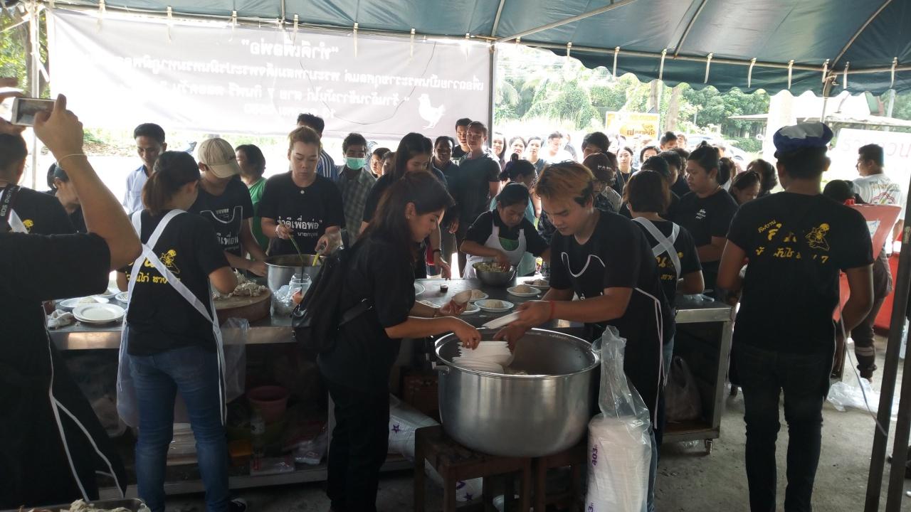เมื่อวันที่ 13 ตุลาคม 60 ที่ร้านอ้วนข้าวมันไก่ สาย 7 เลขที่ 139/14 หมู่ 2 ถ.พุทธมณฑลสาย 7 ต.ท่าตลาด อ.สามพราน จ.นครปฐม ได้ตั้งเต็นท์ติดป้ายประกาศที่หน้าร้านว่า “ทำดีเพื่อพ่อ ถวายเป็นพระราชกุศล ร้านอ้วนข้าวมันไก่สาย 7 กินฟรีทั้งวัน” โดยมีนายสุจินต์ เสนาคำ หรืออ้วน อายุ 41 ปี เจ้าของร้าน นางจุฑารัตน์ เสนาคำ อายุ 41 ปี ภรรยาพร้อมญาติๆ คนงาน กว่า 30 คนช่วยกันต้มไก่ หุงข้าว แจกข้าว ซึ่งมีประชาชนเข้าแถวไปรับประทานข้าวมันไก่จนแน่นหน้าร้าน และมีกำลังอาสาสมัครจากมูลนิธิสุขศาลานุเคราะห์จุดสามพรานมาดูแลการจราจรและความปลอดภัย