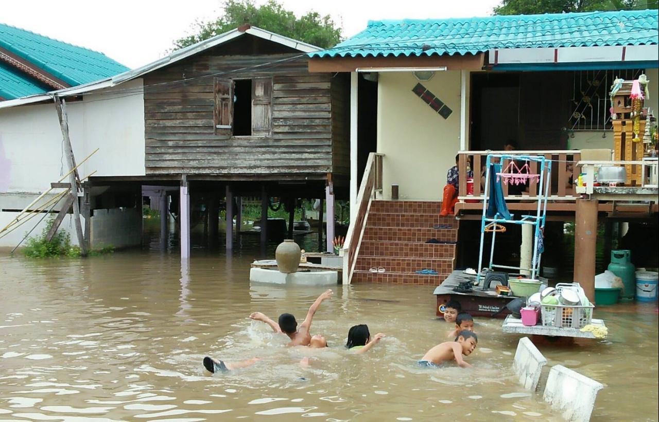 ขณะที่ บางพื้นที่น้ำสูงขึ้นเกือบ 1 เมตร ทำให้ชาวบ้านที่อยู่ริมฝั่งแม่น้ำต้องนำรถออกมาจอดไว้บริเวณริมถนน โดยใช้เรือแทนรถเพื่อเดินทางเข้าออกบ้าน ซึ่งในเขตชุมชนวัดมเหยงค์ ต.ท่าระหัด อ.เมือง น้ำเข้าท่วมบ้านเรือนริมน้ำจนเกือบถึงถนนแล้ว และยังมีลูกเล็กเด็กแดงในเขตพื้นที่ที่น้ำเข้าท่วม ชวนกันออกมาใส่แว่นดำน้ำมาเล่นน้ำกันอย่างสนุกสนานอีกด้วย.