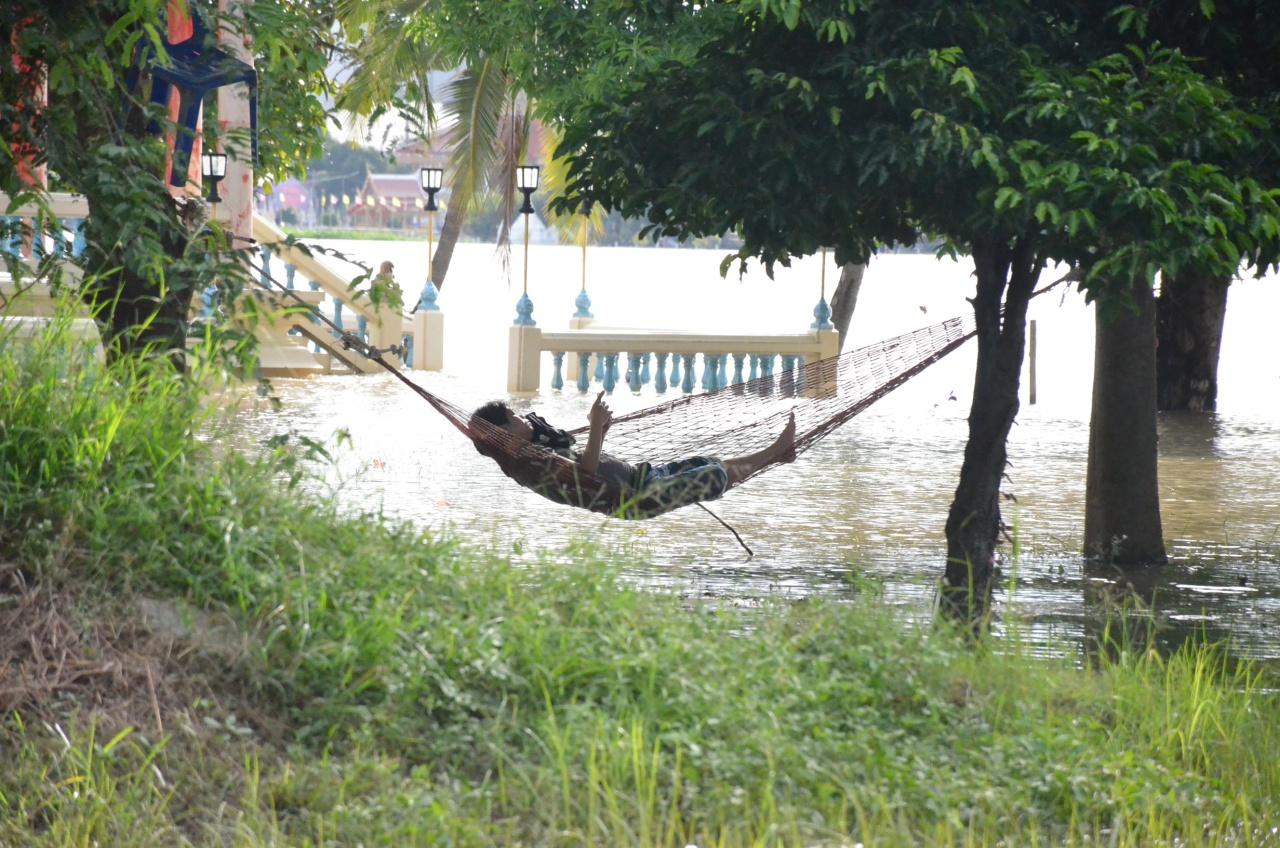 ด้านวัดสวนมะม่วงตำบลบ้านงิ้ว อำเภอสามโคก จังหวัดปทุมธานี น้ำเอ่อเข้าท่วมลานวัด สูงกว่า 40 เซนติเมตร และบ้านเรือนประชาชนที่อยู่ใกล้เคียงก็ได้รับผลกระทบจากน้ำเอ่อล้น ชาวบ้านที่อยู่ริมฝั่งเจ้าพระยาตั้งแต่ อ.เมืองปทุมธานี ขึ้นไปถึง อ.สามโคก ได้รับผลกระทบจากน้ำเอ่อเข้าท่วมบ้านเรือน ทั้งฝั่งตะวันออกและฝั่งตะวันตก โดยเฉพาะที่วัดโพธิ์เลื่อน ต.บ้านกระแชง น้ำเอ่อเข้าท่วมลานวัดสูง 50 เซนติเมตร จนไม่สามารถประกอบศาสนกิจได้ ประกอบกับสภาพพื้นที่วัดโพธิ์เลื่อนเป็นแอ่งกระทะ ทำให้น้ำเอ่อล้นเข้าท่วมพื้นที่วัด หากน้ำในแม่น้ำเจ้าพระยาสูง