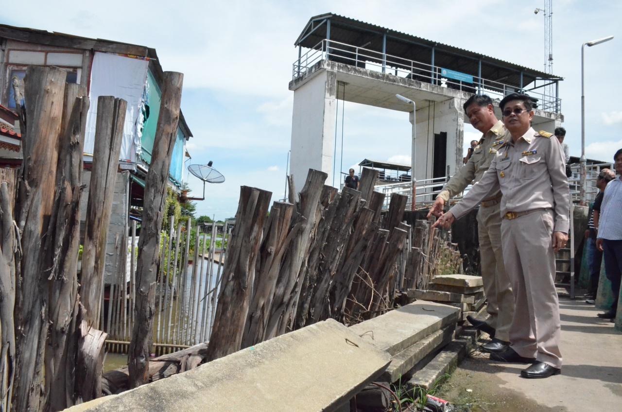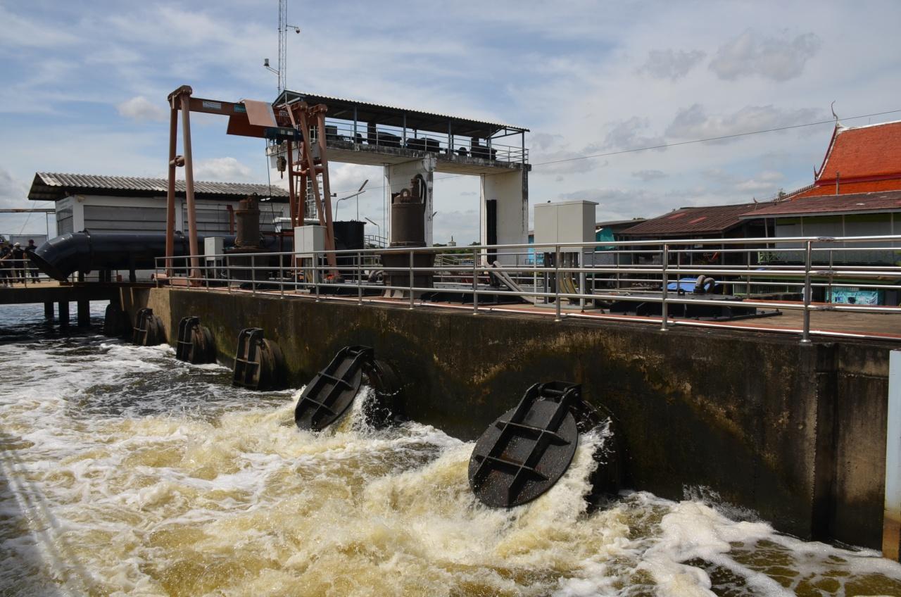 นายธานินทร์ เนื่องทศเทศ ผู้อำนวยการโครงการชลประทานปทุมธานี เปิดเผยว่า ชลประทานมีการเฝ้าติดตามสถานการณ์น้ำอย่างต่อเนื่อง และเฝ้าระวังทุกพื้นที่เสี่ยง โดยจากการตรวจสอบรอยรั่วซึมที่เกิดเป็นรอยรั่วที่อยู่ด้านล่างอาคาร ต่ำกว่าสันเขื่อนประมาณ 5 เมตร อยู่ระหว่างรอยต่อของเขื่อนป้องกันตลิ่งเดิม กับกำแพงของประตูระบายน้ำ โครงการชลประทานได้รับทราบปัญหา และได้ดำเนินการป้องกันชั่วคราวแล้ว โดยการปักเสาเข็มไม้ และลงกระสอบทรายตามแนวเข็มเพื่อชะลอการรั่วซึม ส่วนการแก้ปัญหาได้เสนอแผนงานต่อจังหวัดปทุมธานีและชลประทานแล้ว