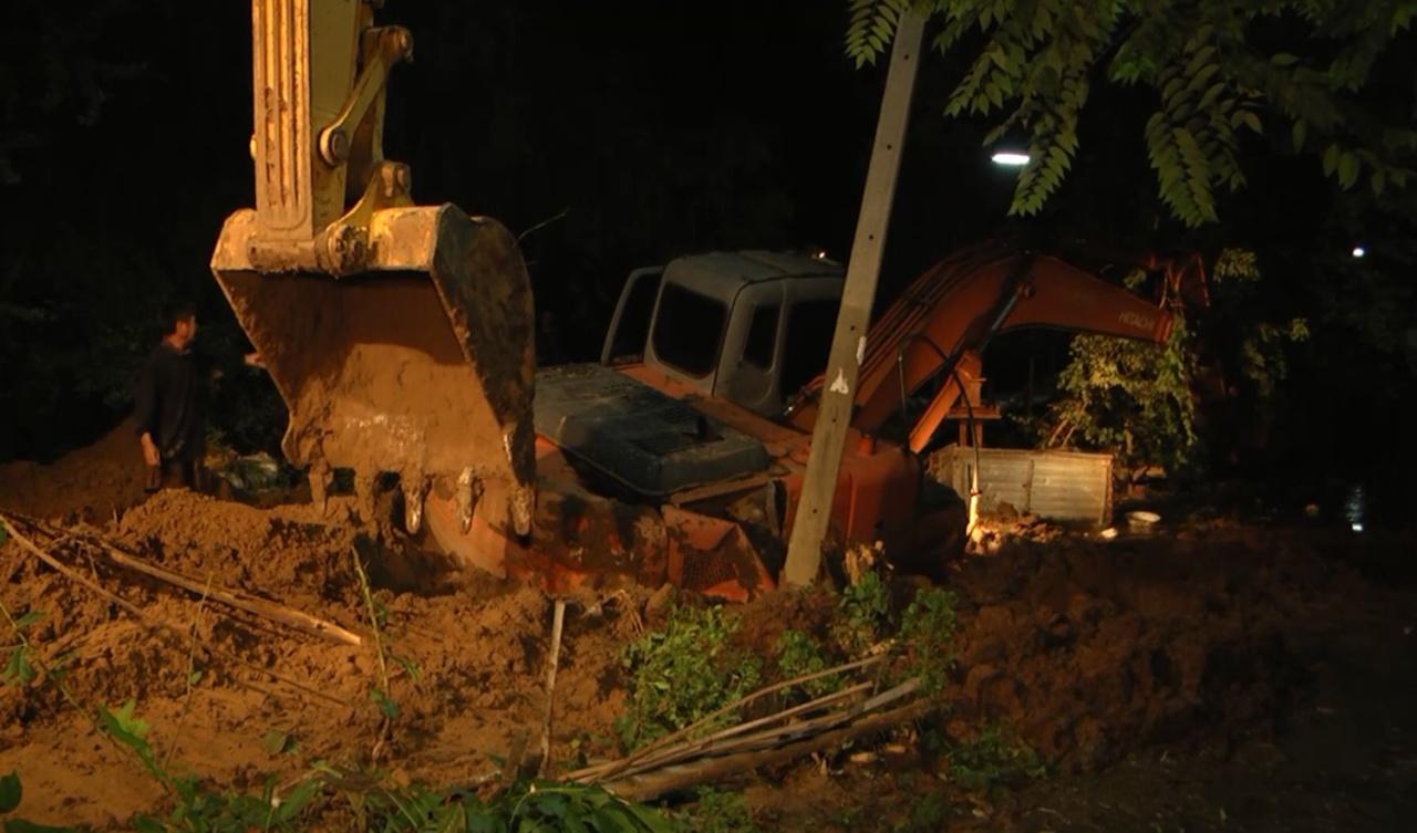 นายอนิรุจ เทียมแก้ว คนขับรถแบ็กโฮ คันเกิดเหตุ เปิดเผยว่า ตนได้นำรถแบ็กโฮเข้ามาขุดดินทำคันกั้นน้ำ แล้วจู่ๆ รถแบ็กโฮได้จมลงไปในดิน พยายามบังคับรถก็ไม่สามารถนำขึ้นมาได้ ยิ่งจมลงไปลึกมากขึ้น เนื่องจากตนเองไม่ทราบว่าบริเวณนั้นเป็นดินอ่อนตัว และลึกมากขนาดนั้น ทำให้รถจมไปครึ่งคัน จึงได้ประสานให้นำรถแบ็กโฮอีกคันมาช่วยนำขึ้น แต่การช่วยเหลือเป็นไปอย่างทุลักทุเล โดยใช้เวลากว่า 2 ชั่วโมงจึงสามารถนำรถแบ็กโฮที่จมดินขึ้นมาได้ ซึ่งเกิดความเสียหายเล็กน้อยเท่านั้น.