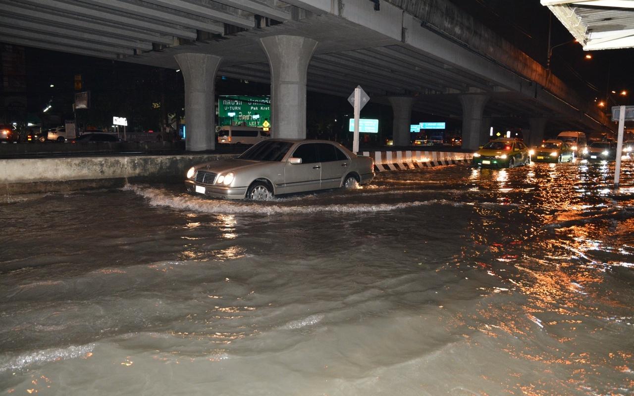 ฝนถล่มนานกว่า 1 ชม. พื้นที่ปากเกร็ด น้ำท่วมซ้ำถนนแจ้งวัฒนะ ทั้งขาเข้า-ออก บริเวณใต้ทางด่วน ระยะทางกว่า 800 เมตร น้ำสูงมิดฟุตปาธ รถจอดเสียหลายคัน...