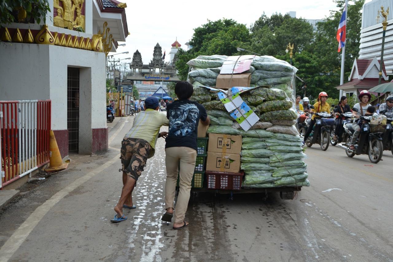 นางฮวย เจือน อายุ 40 ปี แม่ค้าผักชาวกัมพูชา เผยว่า ปีนี้ราคาผักสำหรับกินเจยังไม่ขึ้นราคาและไม่ขาดตลาด แต่การค้าขายไม่ค่อยดี เพราะชาวกัมพูชากินเจลดลงมาก มีชาวเขมรมาซื้อพืชผักผลไม้สำหรับกินเจลดลง ทำให้ไม่คึกคักเหมือนทุกปีที่ผ่านมา
