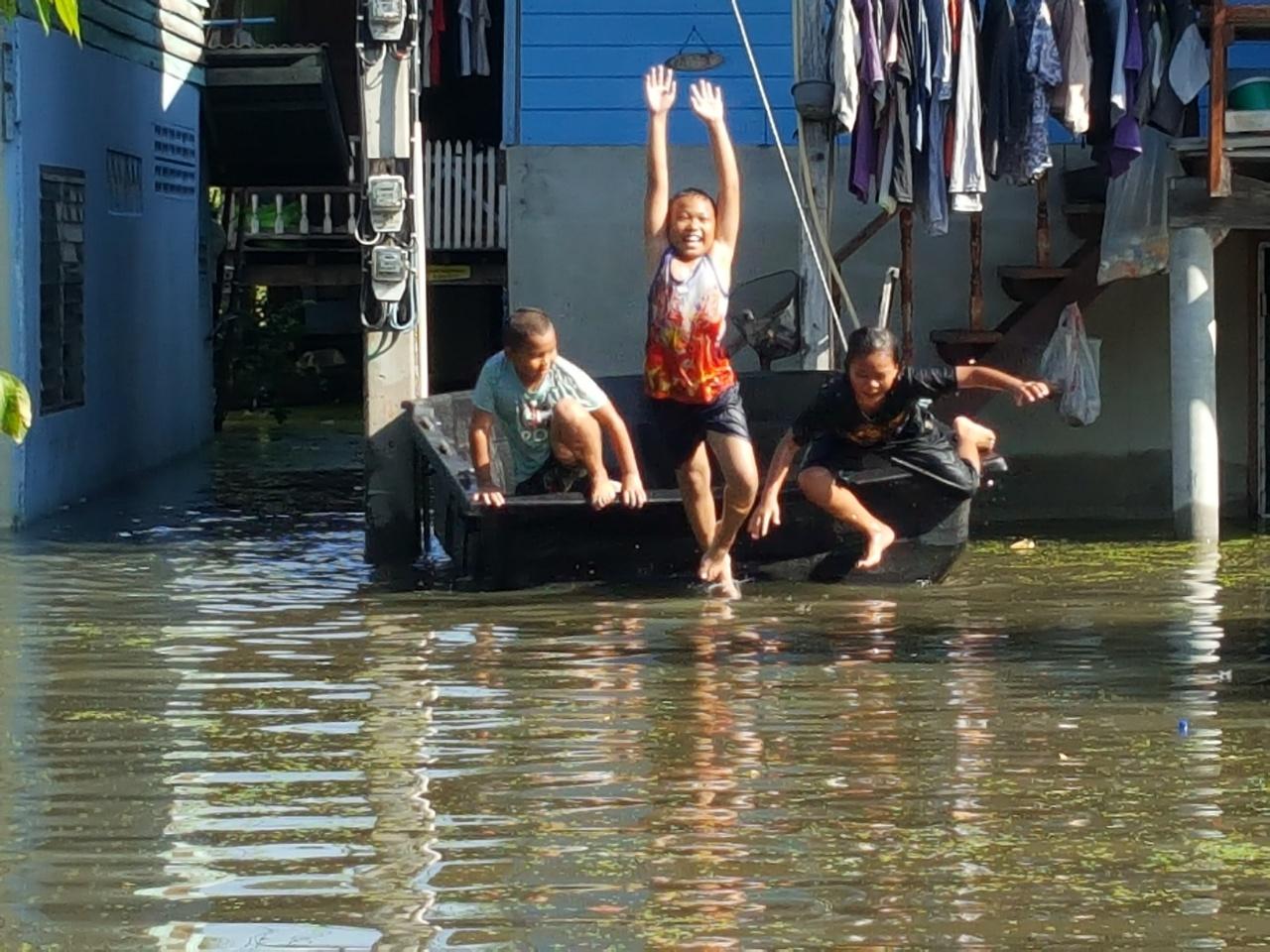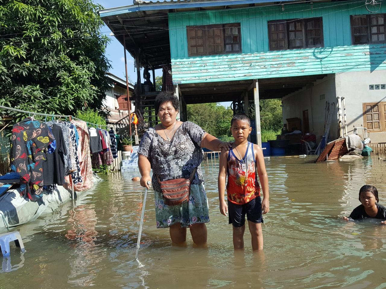 นางพิมพ์ปวีณ์ ทองประสงค์ กล่าวว่า บ้านที่ตนพักอาศัยมีกันอยู่หลายคน บริเวณชั้นล่าง จะถูกน้ำท่วมก่อนทุกครั้ง และคนในบ้านก็จะขนย้ายข้าวของขึ้นมาอยู่ชั้นบน ปีนี้น้ำเอ่อเข้ามาท่วมทั้งบริเวณที่จอดรถ และพื้นบ้านชั้นล่าง ก็ต้องเร่งเก็บข้าวของออก ทำสะพานใช้ชั่วคราวไปก่อน ส่วนรถยนต์ก็ต้องหาที่จอดใหม่เพื่อไม่ให้น้ำท่วม นอกจากน้ำที่ท่วมขังแล้ว ก็ต้องระวังทั้งสัตว์มีพิษ เช่น งู ตะขาบ แมงป่อง รวมทั้ง ยุง แมลงสาบ ที่หนีน้ำขึ้นมาในบ้าน