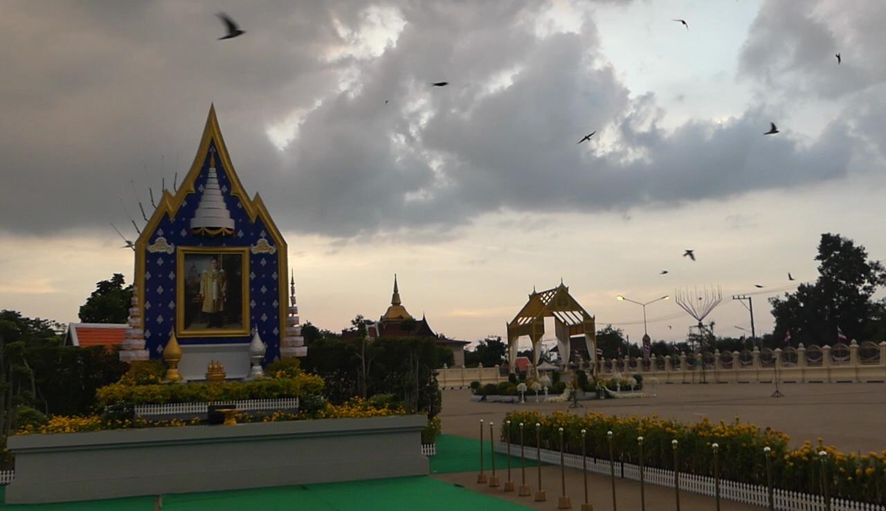 ปทุมธานี ขณะประชาชนร่วมถวายดอกไม้จันทน์ ได้เกิดแสงสวยที่ขอบเมฆ ก่อนมีฝูงนกบินวนรอบพระบรมฉายาลักษณ์