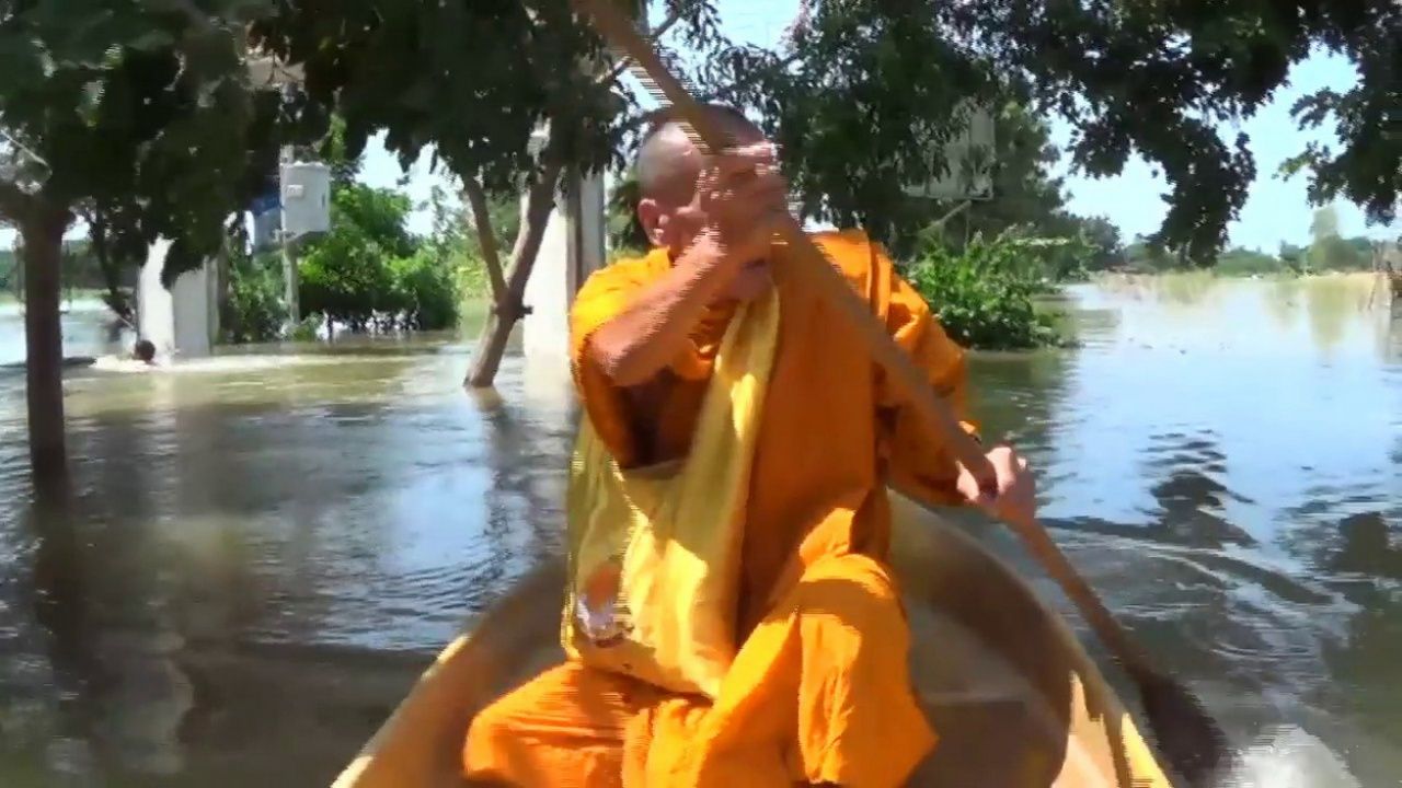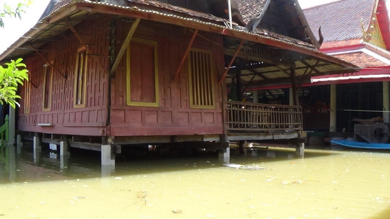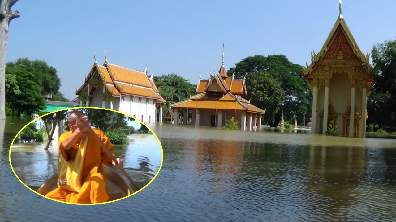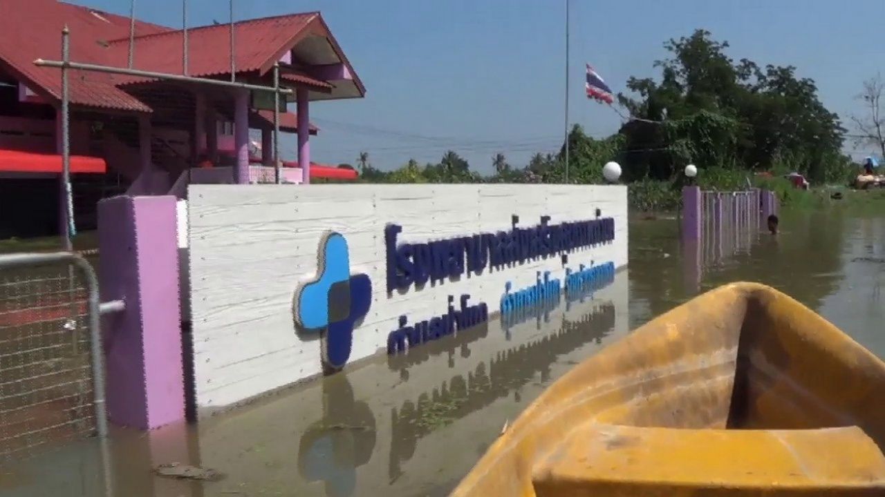 น้ำเจ้าพระยาเอ่อล้นทะลักเข้าท่วมวัดอัมพวัน โรงพยาบาล โรงเรียน บ้านเรือนประชาชน ตำบลป่าโมก อ.ป่าโมก จ.อ่างทอง ไหลลอดใต้กำแพงพนังกั้นกลางดึก ระดับสูงกว่า 1 เมตร พระออกบิณฑบาตไม่ได้ เดือดร้อน...