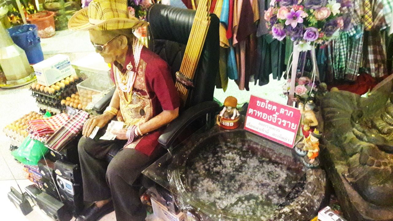 อาจารย์แป๊ะ วัดสว่างอารมณ์ ย้าย ‘ตาทองงิ้วราย’ ออกจากจุดที่มีพระพุทธรูป ตามคำสั่งมหาเถรแล้ว แต่ชาวบ้านก็ยังตามไปจุดธูปกราบไหว้ ขอโชคลาภ เสาะแสวงหาเลขเด็ดกันเหมือนเดิม โดยเฉพาะในอ่างน้ำมนต์มหาโชค...