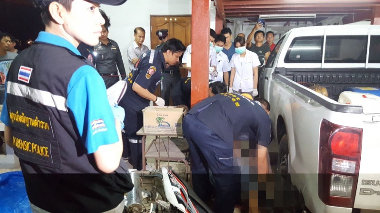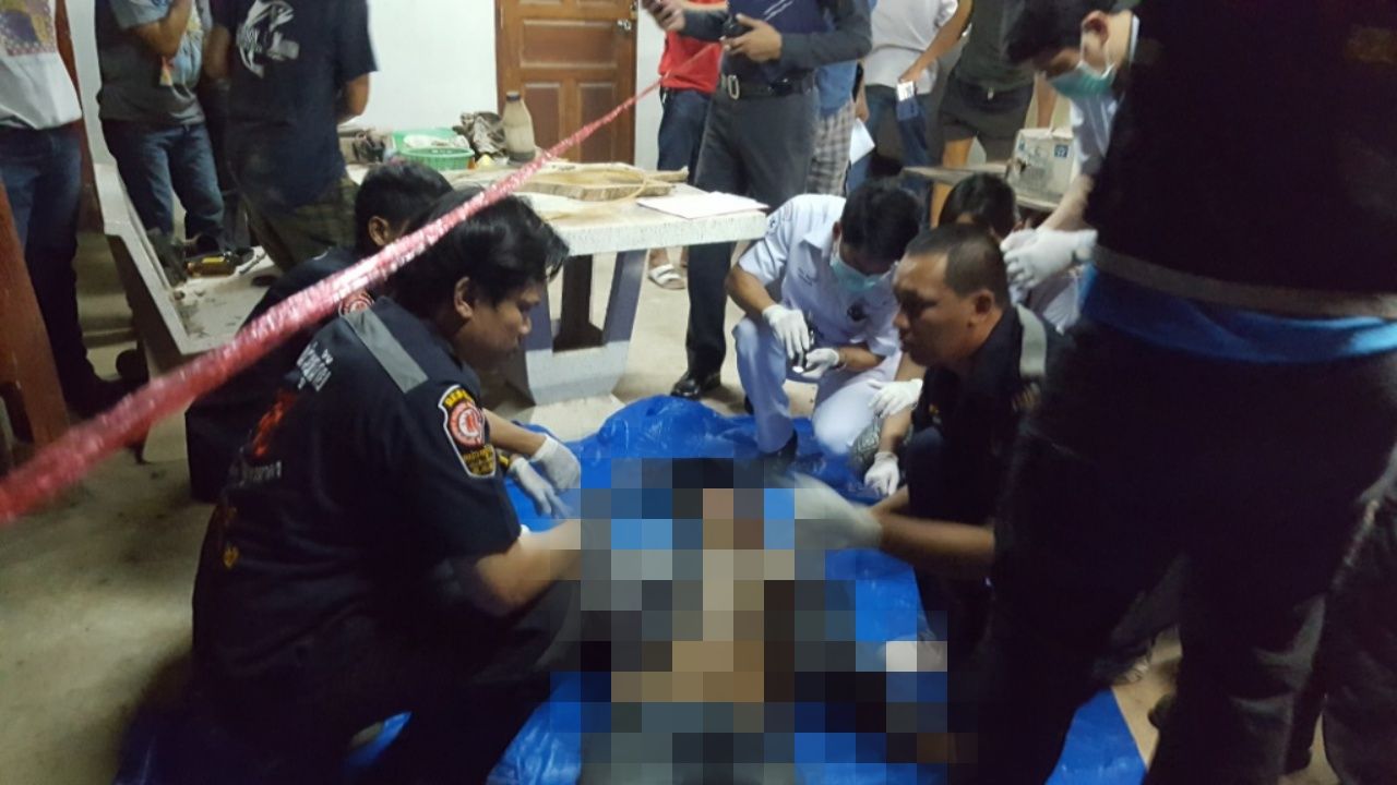 ที่เกิดเหตุ เป็นบ้านไม้ยกสูง ใต้ถุนบ้านเป็นที่จอดรถ ข้างกระบะยี่ห้ออีซูซุ สีขาว หมายเลขทะเบียน บจ 8132 สมุทรสาคร พบรถ จยย.ยี่ห้อฮอนด้า โซนิคสีขาว-แดง หมายเลขทะเบียน คคข 502 ราชบุรี ล้ออยู่ข้างรถกระบะ พบศพทราบชื่อ นายบุญมี โพธิ์ทอง อายุ 38 ปี บ้านเลขที่ 31 ม.1 ต.บ้านยาง อ.เมืองนครปฐม จ.นครปฐม สภาพศพสวมเสื้อลายสก๊อต สีน้ำเงิน นุ่งกางเกงยีนส์ สวมรองเท้าผ้าใบ สวมหมวกแก๊ปสีดำ สะพายกระเป๋าสีน้ำตาล พบบาดแผลถูกยิงเข้าหน้าท้อง 2 นัด สะโพกด้านขวา 4 นัด คนตายมีรอยสักเต็มตัว ทั้งหน้าหลัง นอนจมกองเลือด ในกระเป๋าพบอุปกรณ์งัดแงะ มี กุญแจล็อก 3 ตัว ประแจเลื่อน 2 ตัว สกูรไล 2 อัน ประแจบ็อก 1 อัน เหล็กตัวแอล 2 อัน