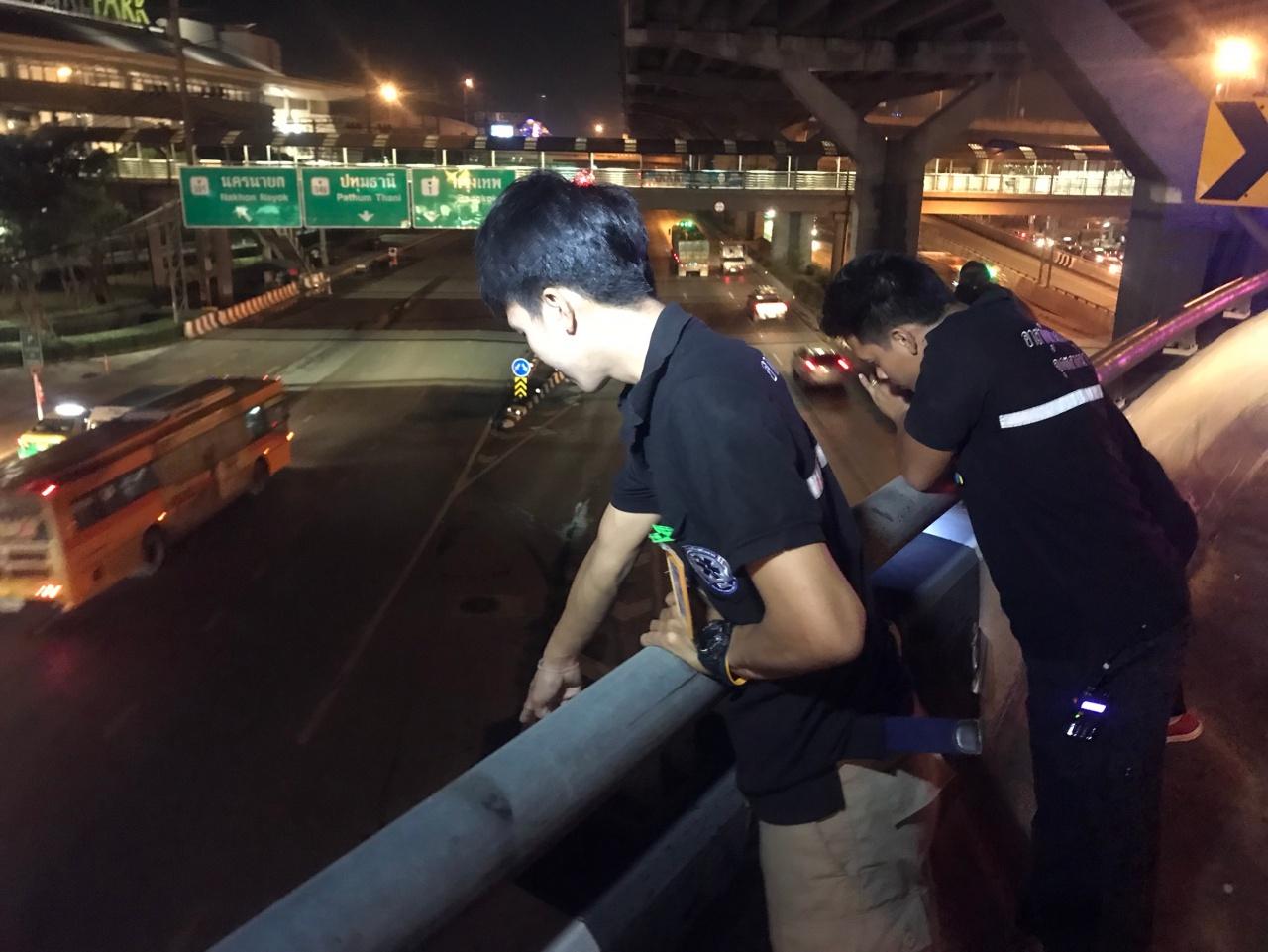 เมื่อเวลา 23.00 น. วันที่ 22 พ.ย. 60 ร.ต.ท.หญิงรัตนาพร บุญหรรษ รอง สว.(สอบสวน) สภ.ประตูน้ำจุฬาลงกรณ์ จ.ปทุมธานี ได้รับแจ้งเกิดอุบัติเหตุรถจักรยานยนต์เสียหลักชนขอบสะพานต่างระดับทำให้ผู้ขับขี่ร่างกระเด็นตกจากสะพานต่างระดับจากถนนพหลโยธินขาเข้ามุ่งหน้าไปปทุมธานี ส่วนผู้ขับขี่ร่างกระเด็นตกจากสะพานต่างระดับอยู่ที่พื้นถนนช่องทางด่วน อยู่บนถนนพหลโยธินขามุ่งหน้าเข้า กทม. หน้าห้างสรรพสินค้าฟิวเจอร์พาร์ครังสิต ต.ประชาธิปัตย์ อ.ธัญบุรี จ.ปทุมธานี หลังรับแจ้งจึงรีบเดินทางไปตรวจสอบพร้อมด้วยเจ้าหน้าที่อาสามูลนิธิป่อเต็กตึ๊ง