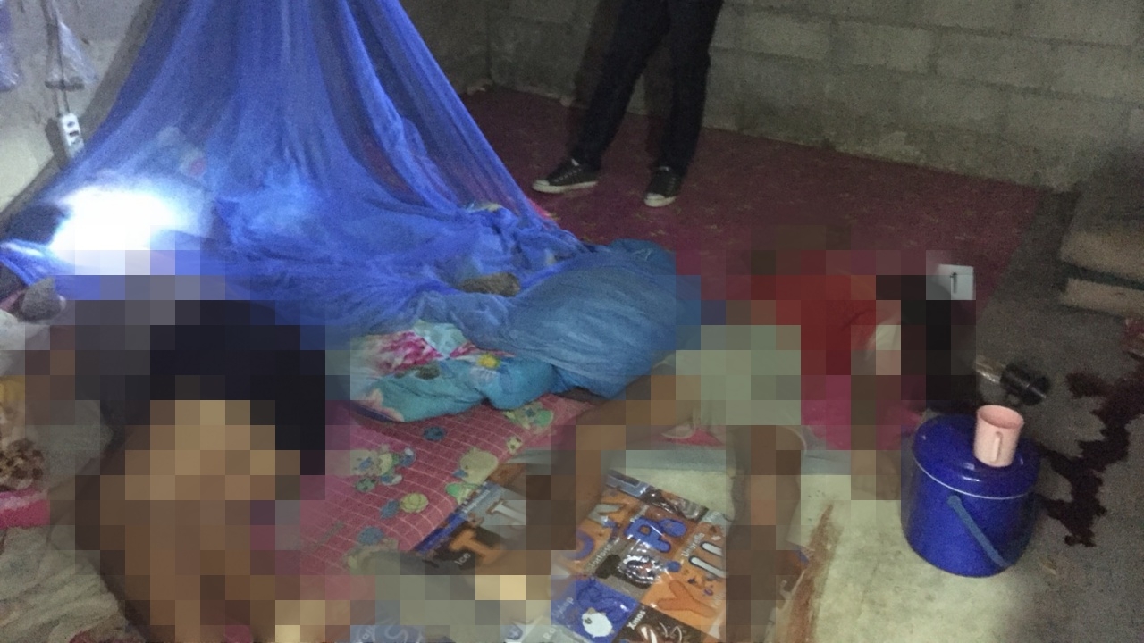 ที่เกิดเหตุ เป็นโรงเก็บยางพารา หลังคามุงสังกะสี กั้นด้วยอิฐบล็อก โดยแบ่งเป็นที่พักคนงาน 3 ห้อง ตั้งอยู่ในส่วนยางกลางหุบเขา ห่างจากชายแดนประเทศพม่าประมาณ 4 กิโลเมตร ภายในห้องพักคนงานห้องแรก พบศพนายนำพล คำคง ( สามี) อายุ 30 ปี ชาวจังหวัดนราธิวาส สวมกางเกางขาสั้นสีขาว เสื้อยึดสีดำ ถูกฟันด้วยของมีคมเข้าที่คอเกือบขาด พบศพ น.ส.มุกดา หงอกวิสัย (ภรรยา )อายุ 27 ปี ชาวจังหวัดชัยภูมิ สวมกางเกงขาสั้นสีดำ สวมเสื้อคอกลมสีขาว ถูกฟันที่คอหวิดขาด และพบศพเด็กหญิง ด.ญ.ณารารักษ์ คำคง อายุ 5 ปี ( บุตร) สวมชุดนอนสีชมพู ถูกฟันที่ใบหน้า ลำตัว แขนขวาขาด ห่างจากโรงเก็บยางพารา ประมาณ 40 เมตร ซึ่งเป็นเพิงพักหลังคามุงด้วยแผ่นยางพลาสติก พบศพ นายประสงค์ คำคง อายุ 50 ปี บิดาของนายนำพล คำคง สวมกางเกงขาสั้นเพียงตัวเดียว ไม่สวมเสื้อ ถูกฟันด้วยของมีคมที่คอเกือบขาด