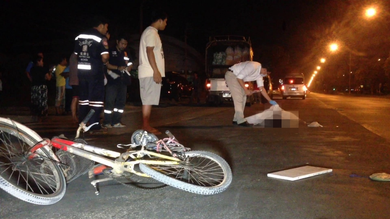 เมื่อเวลา 20.30 น.วันที่ 28 พ.ย.60 ร.ต.อ.วุฒิกิจ บัวนวล รอง สว.(สอบสวน) สภ.ไทรน้อย จ.นนทบุรี ได้รับแจ้งมีรถยนต์กระบะชนรถจักรยาน มีผู้เสียชีวิต เหตุเกิดบน ถนนปทุมธานี-บางเลน ขาออก บริเวณจุดกลับรถทางเข้าวัดสโมสร หมู่ 3 ต.ขุนศรี อ.ไทรน้อย จึงพร้อมด้วยแพทย์เวรจากสถาบันนิติวิทยาศาสตร์ และเจ้าหน้าที่มูลนิธิป่อเต็กตึ๊งรุดเข้าตรวจสอบ