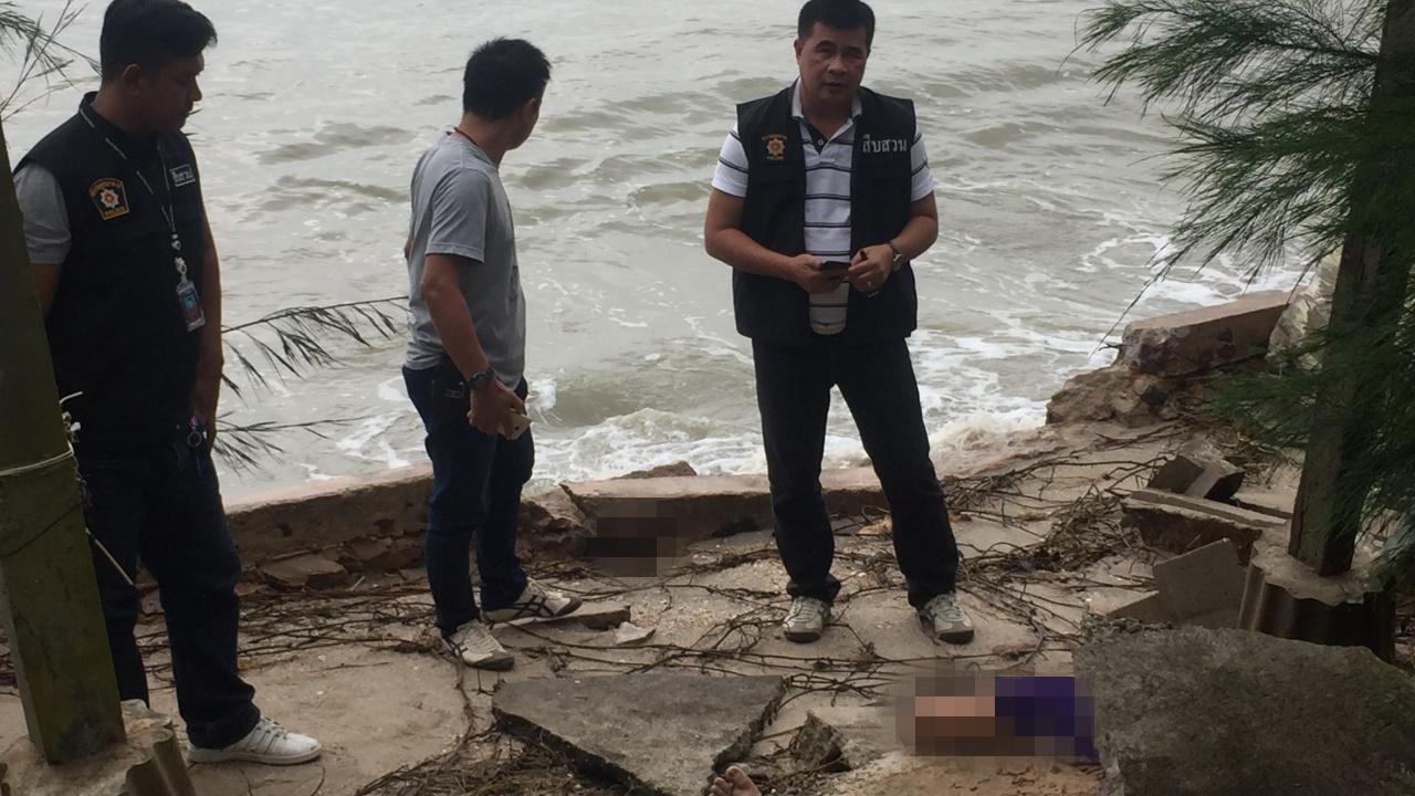 สอบสวน นายชาญยุทธ พรมทา อายุ 48 ปี ชาวอุดรธานี หัวหน้าชุดช่างจากบริษัท plutotech ซึ่งเดินทางจาก จ.สระบุรี มาติดตั้งเครื่องจักรมอเตอร์ ภายใน บ.เหล็กแผ่นรีดเย็น จำกัด ทราบว่านายยุทธพงษ์ แสนบุญ ผู้ตาย ซึ่งเป็นทีมช่างติดตั้งเครื่องจักร ได้ขับรถกระบะโตโยต้า วีโก้ สีขาว ทะเบียน กท 3005 สระบุรี หายไปตั้งแต่ช่วงค่ำที่ผ่านมา จึงออกตามหาจนพบกลายเป็นศพอยู่ชายทะเลดังกล่าว เบื้องต้นเจ้าหน้าตำรวจคาดว่าผู้ตายอาจมานั่งพักผ่อนบริเวณนี้แล้วถูกคลื่นซัดร่างตกลงมา และถูกกำแพงปูนที่คลื่นซัดพังทับจนเสียชีวิต ซึ่งเจ้าหน้าที่ตำรวจจะสอบสวนหาสาเหตุการเสียชีวิตที่แท้จริงต่อไป.