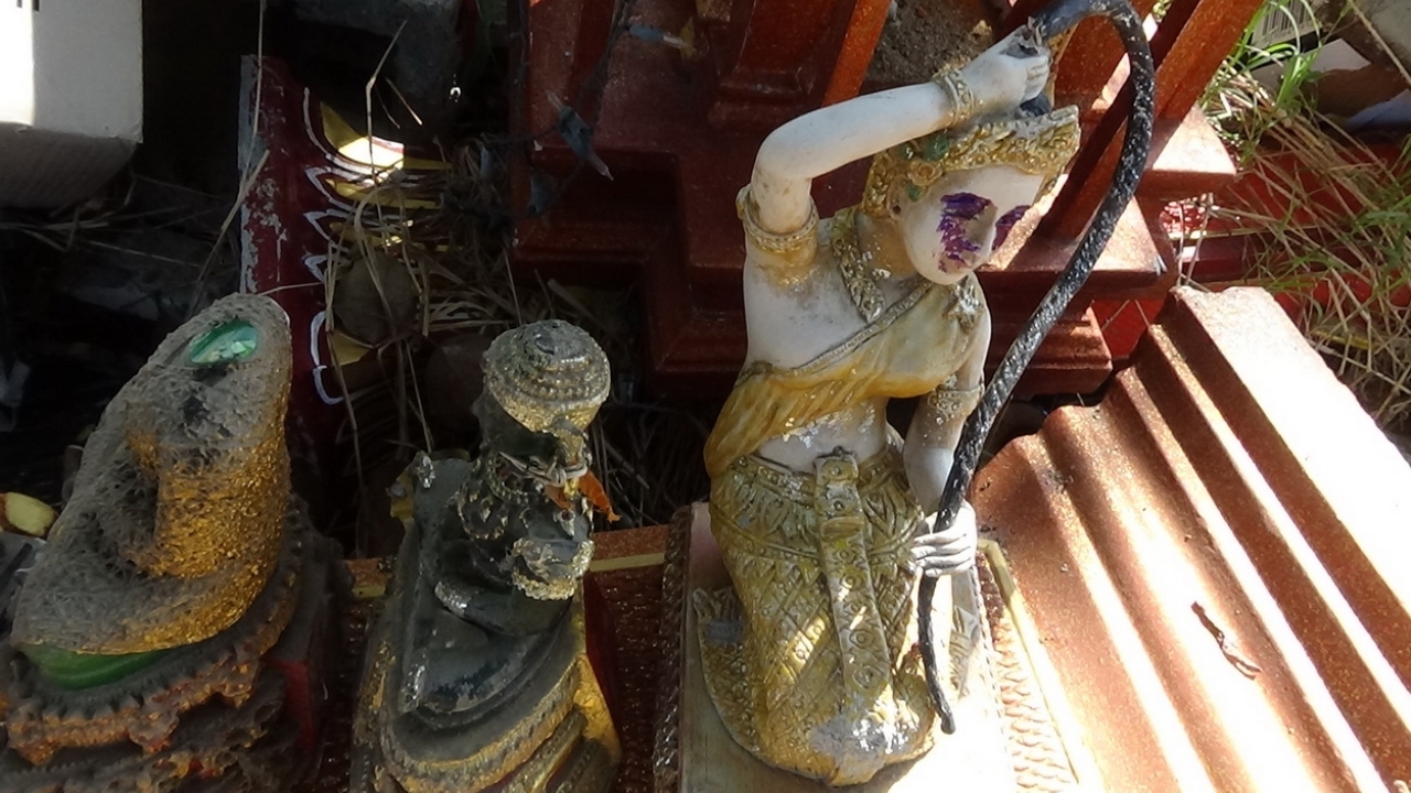 ด้านนายสมนึก สังข์วุฒิ เจ้าหน้าที่วีอาร์กู้ภัยจังหวัดอ่างทอง กล่าวว่า บริเวณนี้เป็นวัดโพธิ์ ที่ร้างเก่าแก่มานานหลายสิบปีแล้ว และที่ผ่านมาได้มีประชาชนนำศาลพระภูมิเจ้าที่ ที่หักพังจากการรื้อถอนเปลี่ยนใหม่และนำของเก่าที่เสียหายมาทิ้ง เป็นจำนวนมาก ทางเจ้าหน้าที่ที่เกี่ยวข้องได้ทำการเก็บและปรับภูมิทัศน์จนสะอาดเรียบร้อย แล้วผ่านไปไม่ถึง 1 ปี กลับมีประชาชนนำซากศาลประภูมิเจ้าที่ สิ่งของวัตถุมงคลรูปปั้นต่างๆ ที่หักพังเสียหายมาทิ้งมากกว่าเดิมสร้างความหวาดผวาน่าสะพรึงกลัว แก่ประชาชนผู้ที่เดินทางผ่านรวมทั้งชาวบ้านในพื้นที่