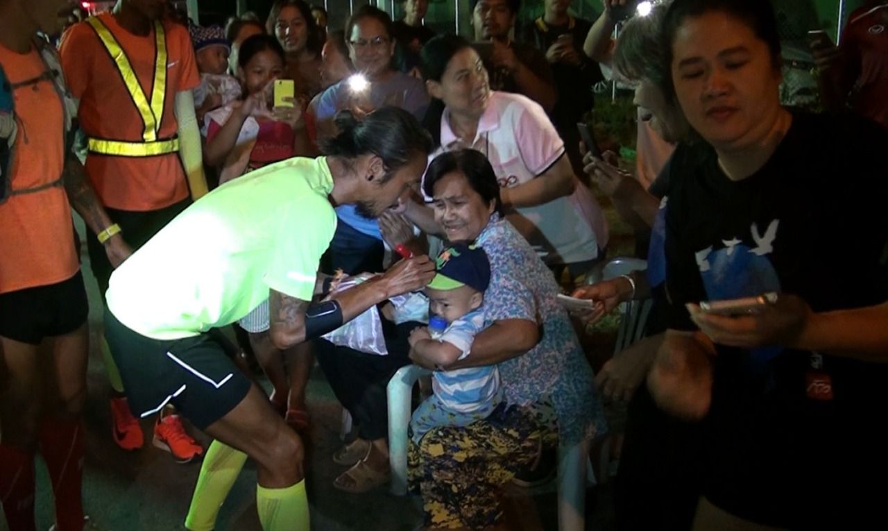 แม้ว่าในวันนี้จะเริ่มวิ่งตั้งแต่ ตี 2 แต่อากาศเป็นใจ เย็นสบาย มีลมอ่อนๆ ช่วงระหว่างทางผ่านที่ผ่าน รพ.สต.ต.ธรรมามูล สี่แยกไฟแดง อ.มโนรมย์ และรพ.สต.ต.บ้านหางน้ำหนองแขม ซึ่งเป็นจุดใหญ่มีนายเจิดศักดิ์ นิลอุบล นายอำเภอมโนรมย์ มาให้การตอนรับตูนและคณะ ซึ่งในการวิ่งออกจากชัยนาทครั้งนี้ ประชาชน ไม่อยากให้ คณะของตูนต้องหยุดชะงักหลายครั้ง อยากให้ตูนวิ่งรวดเดียวจบในเซตแรกจึงมารอในจุดใหญ่ๆ โดยในแต่ละจุดมีเจ้าหน้าที่และประชาชน มาร่วมสมทบทุนบริจาคและให้กำลังใจเป็นจำนวนมาก ตลอดสองข้างทาง พร้อมทั้งตะโกนเชียร์ "พี่ตูนสู้ๆ" เมื่อตูนวิ่งผ่านในแต่ละจุด แต่สิ่งที่สร้างความประทับใจให้กับตูน คือ ลูกส้มโอขาวแตงกวา ซึ่งเป็นผลไม้ประจำจังหวัดชัยนาท ที่แฟนคลับนำธนบัตรเสียบไม้มาปักไว้ และมีรูปภาพของตูนเองอยู่ตรงกลางมอบให้ จนต้องยกชูเหนือศรีษะและพูดว่า "ขอบคุณที่อุตส่าห์ตื่นมารอผมแต่เช้าครับ"