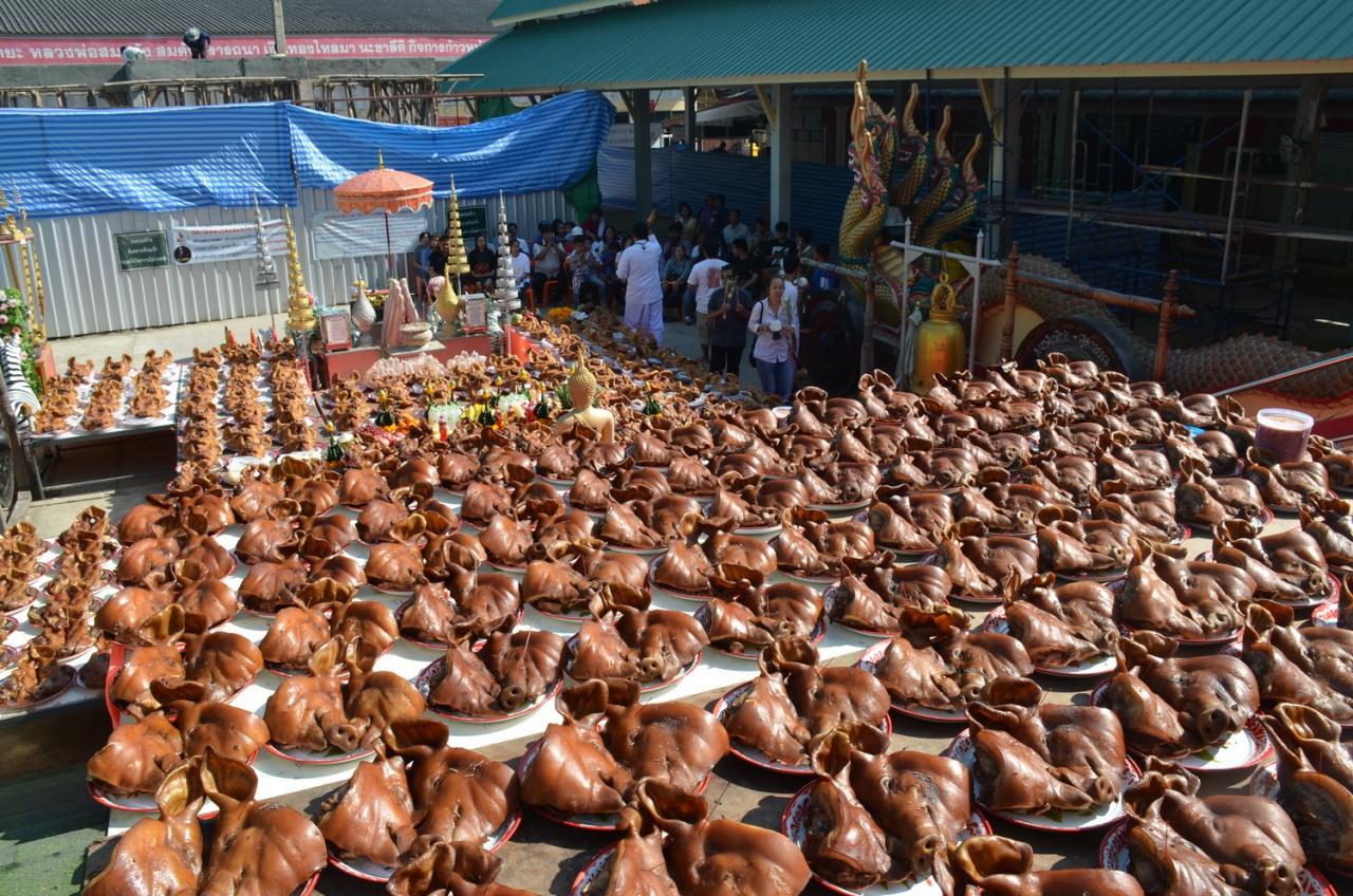 คนสมหวังจากการบน หลวงพ่อสมหวัง พระพุทธรูปศักดิ์สิทธิ์ ที่วัดกลางบางพระ นำหัวหมู รวม 300 หัว มาถวาย พร้อมให้พราหมณ์ทำพิธี ก่อนที่เจ้าอาวาสจะนำไปแจกจ่ายเพื่อแผ่บุญกุศล ...