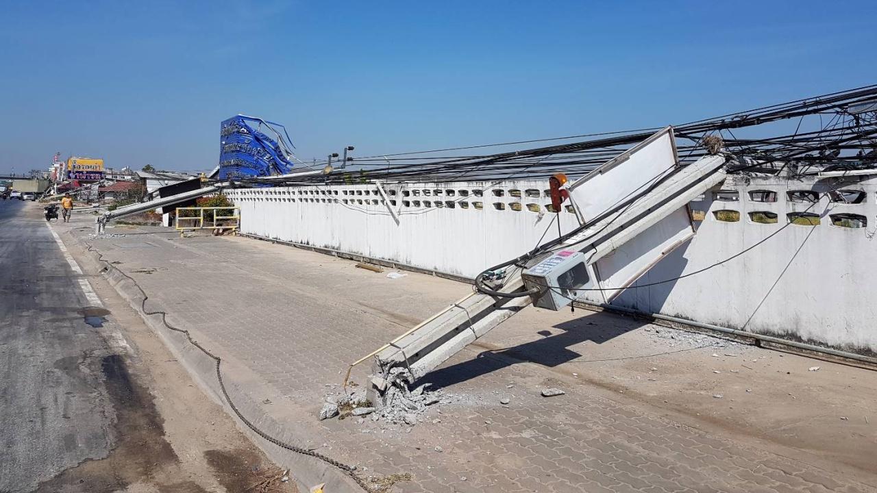 เมื่อเวลา 12.00 น. วันที่ 24 ธ.ค.60 ร.ต.อ.หญิง ศุภนันท์ จิตรเนียม รองสว.(สอบสวน) สภ.บางเสาธง จ.สมุทรปราการ รับแจ้งมีรถเทรลเลอร์ 18 ล้อเฉี่ยวชนสายไฟบริเวณถนนเทพารักษ์ขาออกช่วง กม.ที่ 21 ต.บางเสาธง อ.บางเสาธง ทำให้สายไฟถูกดึงรั้ง และมีเสาไฟบางต้นล้มทับบ้านประชาชนที่อยู่ริมถนน จึงรุดตรวจสอบที่เกิดเหตุพร้อมด้วยมูลนิธิร่วมกตัญญู