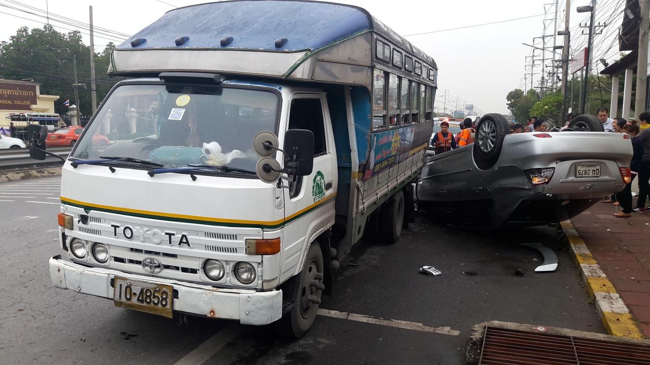 เมื่อเวลา 07.30 น. วันที่ 28 ธ.ค. 60 พ.ต.ท.ศิวะ ริมฝาย สว.(สอบสวน) สภ.บางปู จ.สมุทรปราการ รับแจ้งมีอุบัติเหตุรถยนต์เก๋งชนรถจักรยานยนต์ มีผู้ได้รับบาดเจ็บหลายราย เหตุเกิดบริเวณหน้าตู้ยามจุดบริการประชาชนเทคนิค ถนนสุขุมวิท ต.บางปูใหม่ อ.เมืองสมุทรปราการ หลังรับแจ้งจึงพร้อมด้วยมูลนิธิร่วมกุศลสมุทรปราการ และกู้ภัยบางปู 811 เดินทางเข้าตรวจสอบ