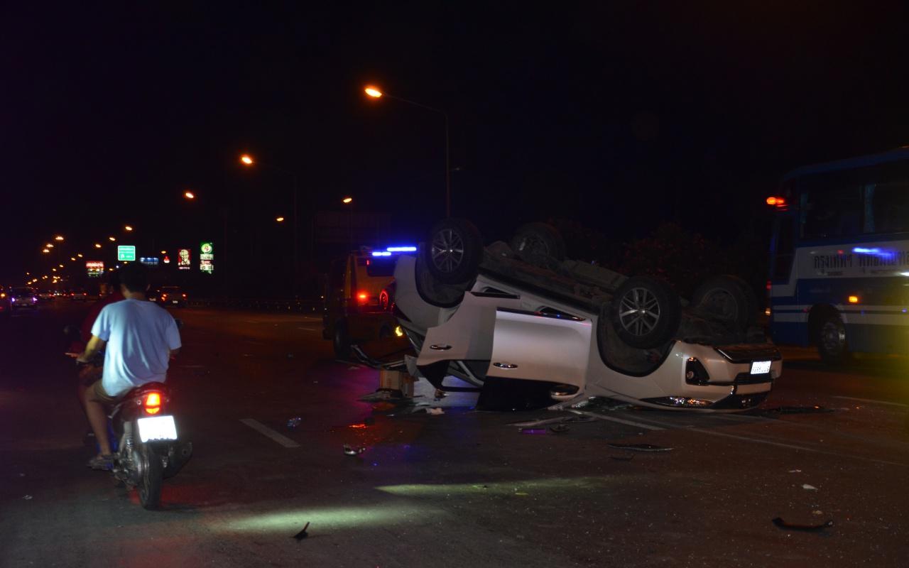 เพื่อนห้ามไม่ฟัง หนุ่มวัย 50 เมาแล้วห้าว ขับกระบะย้อนศร สุดท้ายเป็นเรื่อง ชนฟอร์จูนเนอร์ จนหงายท้อง กวาดเรียบกลุ่มจยย.พังยับ กลับจากทำบุญไหว้พระ ทำคนเสียชีวิต 1 เจ็บอีก 4...