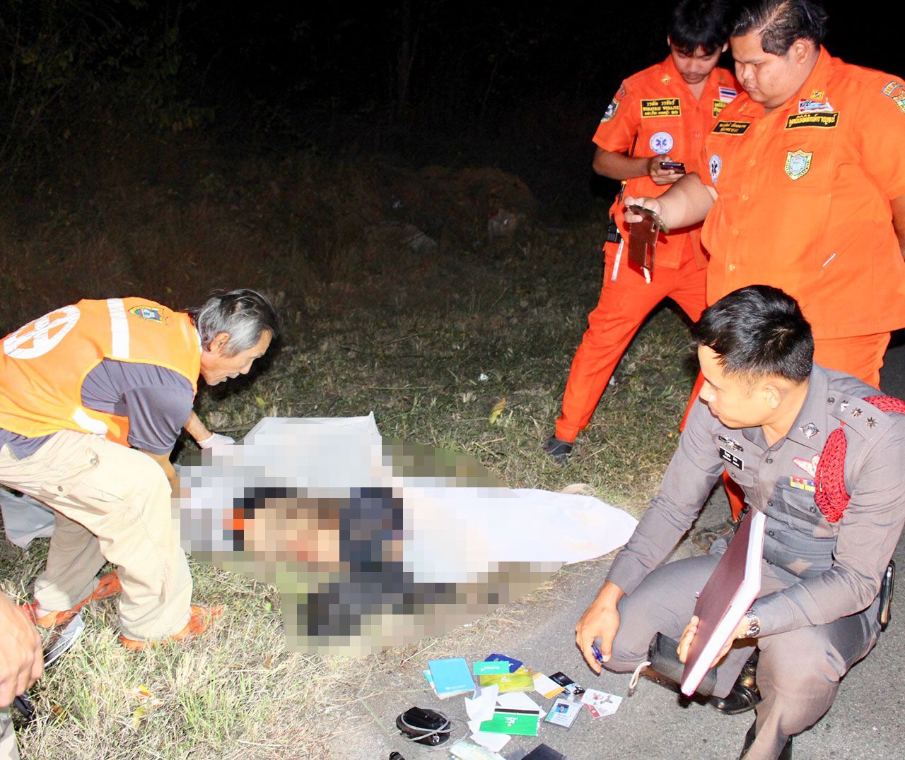 ส่วนคนขับรถจักรยานยนต์คันดังกล่าวนอนคว่ำหน้าเสียชีวิตคาที่อยู่บริเวณไหล่ทาง สภาพศพนอนคว่ำหน้ามีเลือดไหลออกจมูกและปาก หลังจากเจ้าหน้าที่พลิกศพพิสูจน์ในเบื้องต้นแล้ว เจ้าหน้าที่จึงนำศพไปไว้ที่ รพ.พหลพลพยุหเสนา และได้ติดต่อไปหาญาติของผู้เสียชีวิตมาดูศพ
