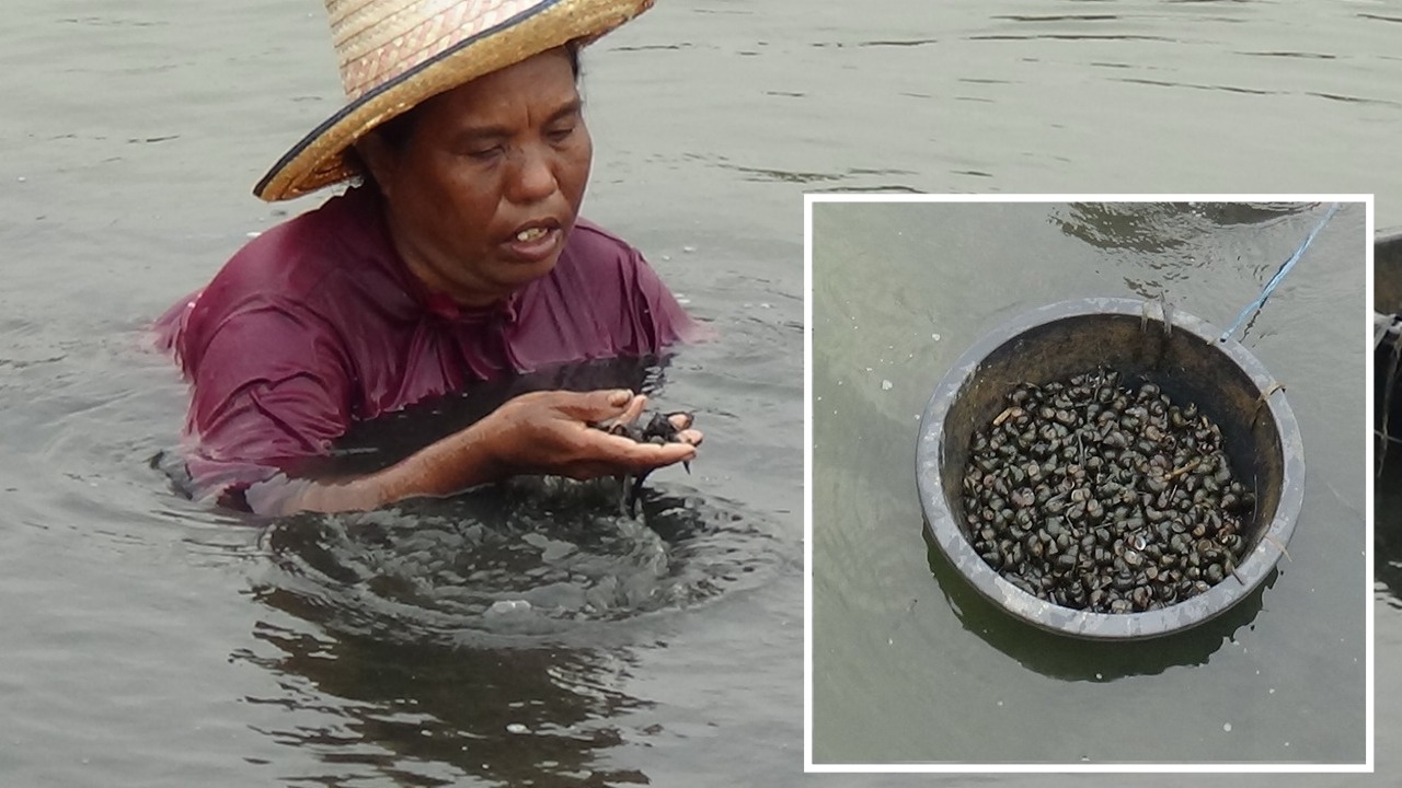 ทั้งนี้ หอยขมจะอยู่ตามพื้นดินใต้น้ำและมีบางส่วนที่เกาะอยู่ตามกิ่งไม้ ตนเองจะทำการเก็บหอยขมตัวโตๆ นำมาขาย ส่วนตัวเล็กๆ นั้นก็ปล่อยให้อยู่ในลำคลองเพื่อให้โตก่อนจะมาเก็บไปขายในครั้งต่อไป.