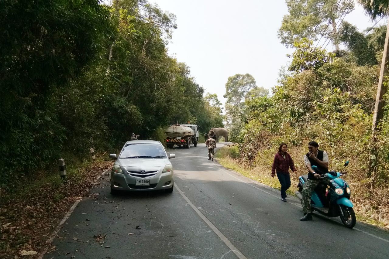 ด้าน นายวิชัย พรลีแสงสุวรรณ์ ผอ.ส่วนอุทยานแห่งชาติ กล่าวว่า ในช่วงเช้า วานนี้ มีช้างพลายสะอาดและพลายด้วน เหมือนกับการแก่งแย่งชิงดีกัน ซึ่งเป็นธรรมชาติของสัตว์ป่าที่ว่าจะต้องคัดเลือกตัวที่ดีที่สุดเป็นผู้นำ ตั้งแต่ 7 โมงเช้า จนกระทั่ง 10.00 น. ช้างก็ชนกัน ทำให้รถติดที่บริเวณอ่างเก็บน้ำสายศร ซึ่งช้างอยู่ในอาการตกมัน มีผลกระทบต่อนักท่องเที่ยว ก็ขอให้นักท่องเที่ยวเชื่อเจ้าหน้าที่ แต่ช่วงนั้นก็มีรถไกด์ซึ่งเป็นชาวต่างชาติไม่เชื่อ ขับรถเข้าไปใกล้ๆ เพื่อถ่ายรูป เพราะโอกาสแบบนี้ไม่ค่อยมีให้เห็น