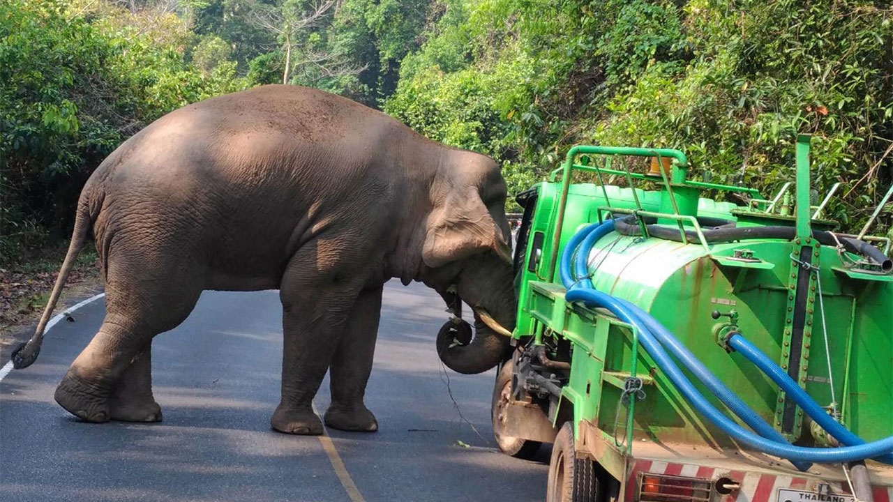 ช้างป่าเพศผู้อายุราว 10 ปี มีอาการตกมัน ออก มาเดินบนถนนปราจีน-เขาใหญ่ กม.21 ต.นา-หินลาด อ.ปากพลี จ.นครนายก และเกิดอารมณ์ หงุดหงิด ใช้งาทิ่มใส่รถบรรทุกน้ำที่เจ้าหน้าที่อุทยานแห่งชาติเขาใหญ่ นำมาฉีดผลักดันให้กลับเข้าป่า จนประตูรถบุบก่อน ที่ช้างจะเดินไปตามถนนหลายกิโลเมตรและหลบเข้าป่าข้างทางหายไป.
