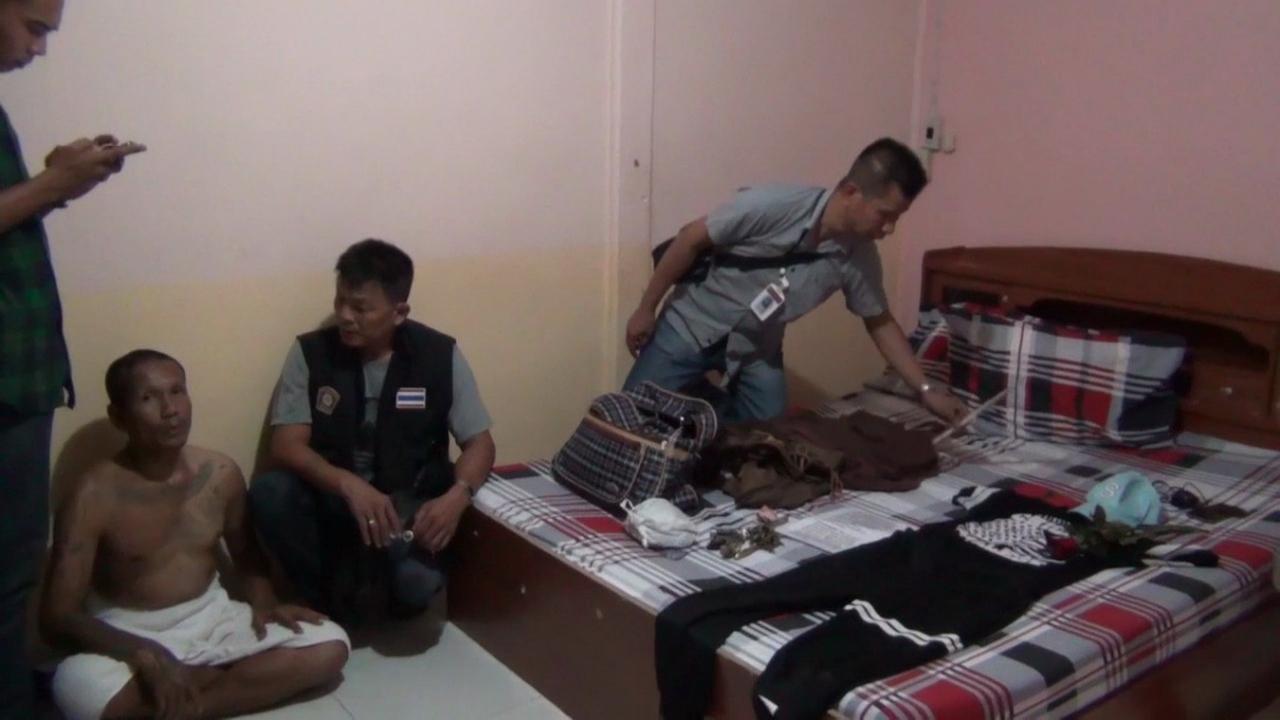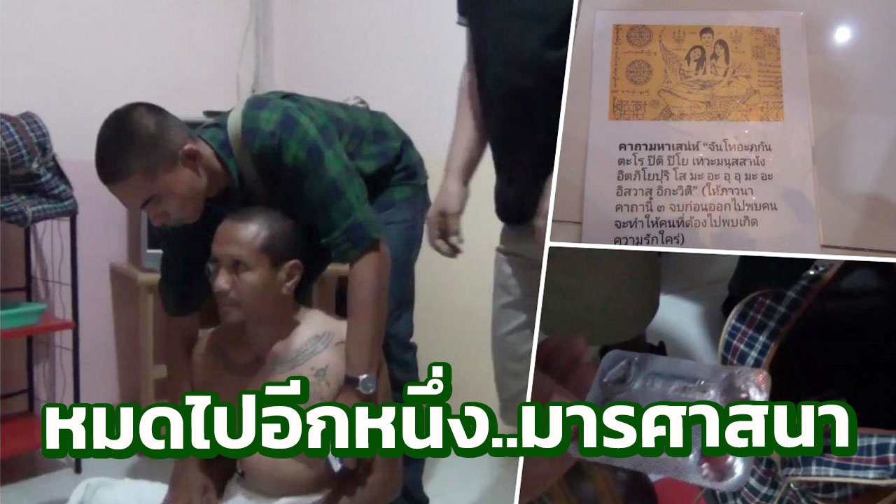 พบชายศีรษะโล้น สักยันต์ตามร่างกาย นุ่งผ้าขนหนูเพียงผืนเดียว เมื่อตรวจค้นกระเป๋าพบจีวร เครื่องรางของขลัง บทคาถาสวดมนต์ อุปกรณ์ทำพิธีลงนะหน้าทอง ยาไวอากร้าที่ถูกกินไปแล้ว 2 เม็ด เสื้อยืดสีดำ กางเกงขาวยาวสีดำ และหมวกที่เตรียมมาเปลี่ยนเพื่อตบตา ค้นใบสุทธิ ทราบชื่อต่อมา พระอัมตระวงษ์ แตงเกษม อายุ 52 ปี ซึ่งยอมรับว่าตนเองเป็นพระที่อยู่ในจังหวัดกาญจนบุรี แต่ได้ธุดงค์มาขออาศัยวัดในจังหวัดอ่างทองเพื่อปฏิบัติธรรม