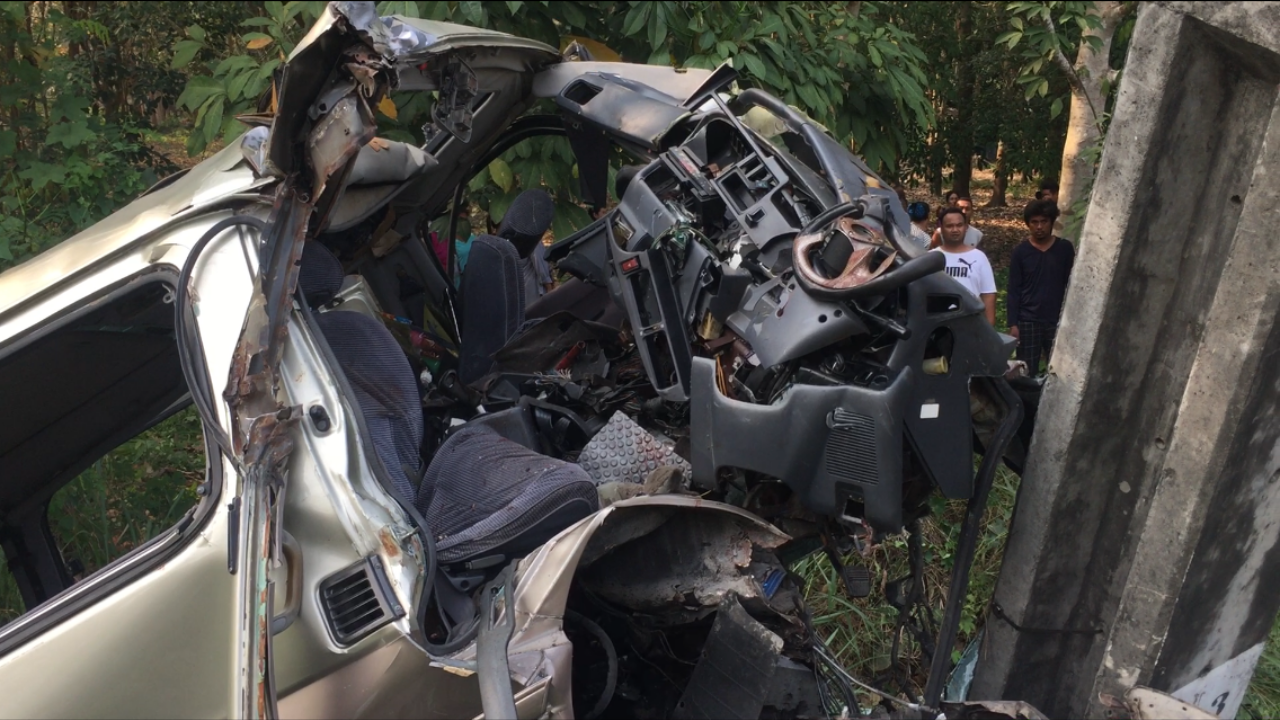 รถตู้กลับจากท่องเที่ยวตรุษจีน หลับในอัดเสาไฟฟ้าแรงสูงหักสองท่อน ที่ประจวบฯ แม่รอด พ่อ-ลูกดับรวม 3 ราย ...