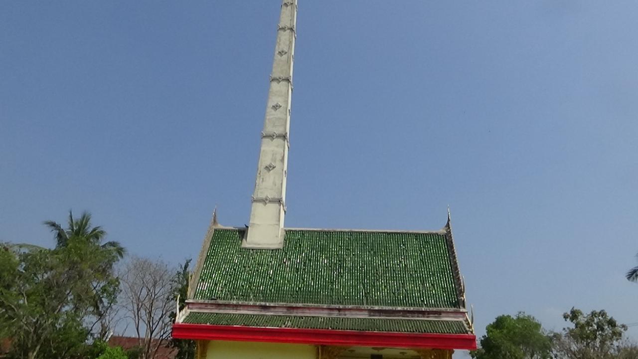 ฮือฮา!! วัดดังในอ่างทอง ใช้ขวดเบียร์ยี่ห้อดังสร้างหลังคาเมรุและศาลาวัด โดยมีญาติโยมนำมาถวายให้อดีตเจ้าอาวาส จนนำมาสู่งานศิลปะของวัสดุที่เหลือใช้นำมามุงหลังคาได้สวยงาม จนใช้งานมาแล้วกว่า 40 ปี...