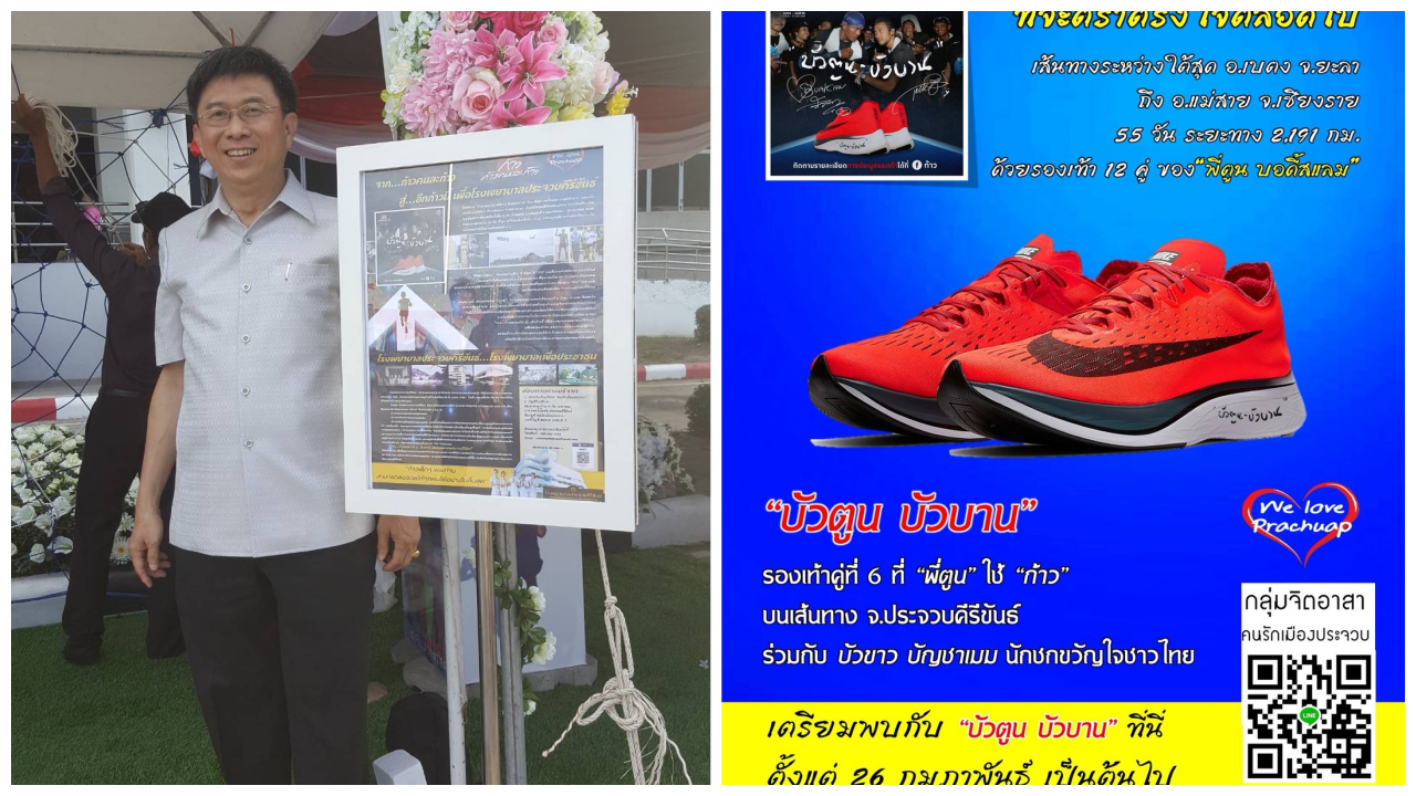 ต่อยอดจากรองเท้าวิ่ง “พี่ตูน” รพ.ประจวบคีรีขันธ์ นำรองเท้า “บัวตูน บัวบาน” ที่ประมูลมาหลังใส่วิ่งกับ ‘บัวขาว’ ระดมทุนซื้อเครื่องมือแพทย์ “จาก...ก้าวคนละก้าว สู่...อีกก้าวนี้ เพื่อโรงพยาบาลประจวบคีรีขันธ์”