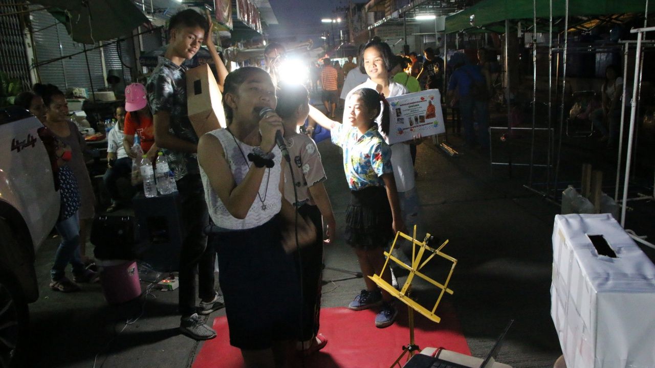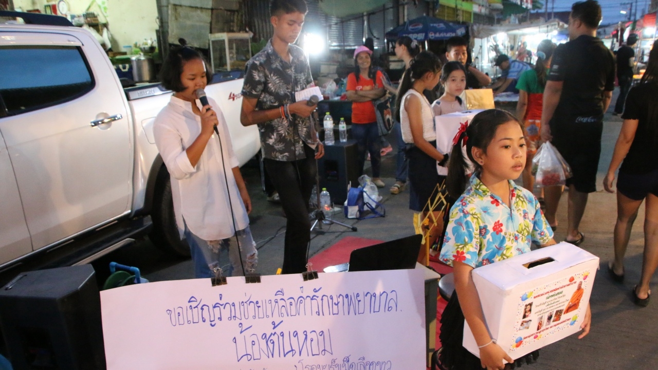 วันที่ 25 ก.พ. 61 ที่ตลาดนัดหมู่บ้านบูรพาซิตี้ หมู่14 ต.บางวัว อ.บางปะกง จ.ฉะเชิงเทรา กลุ่มเยาวชนลูกทุ่งไทย ซึ่งเป็นน้องๆ นักเรียนในพื้นที่ฉะเชิงเทรา ชลบุรี และลพบุรี โดยมีตั้งแต่ระดับชั้นประถมจนถึงมัธยมศึกษาจำนวน 7 คน มายืนร้องเพลงเปิดหมวกเพื่อนำเงินที่ได้รับบริจาคไปช่วยเหลือค่ารักษาพยาบาลให้น้องต้นหอม เพื่อนในกลุ่มที่ป่วยเป็นโรคมะเร็งเม็ดเลือดขาว และปอดติดเชื้อ หรือจะ โอนเข้าบัญชี นางวนารัตน์ จันทร์ชุ่ม เลขที่บัญชี 461-0-30990-4 ธนาคารกรุงไทย สาขานิคมอุตสาหกรรมอมตะนคร โดยมีนายถนัดกิจ นาคสวัสดิ์ คุณครู ได้สนับสนุนอุปกรณ์การร้องเพลงทุกที่ ที่มีตลาดนัด เนื่องจากน้องๆนั้นไม่สามารถเตรียมของได้ทัน จึงรีบช่วยเหลือทุกอย่าง