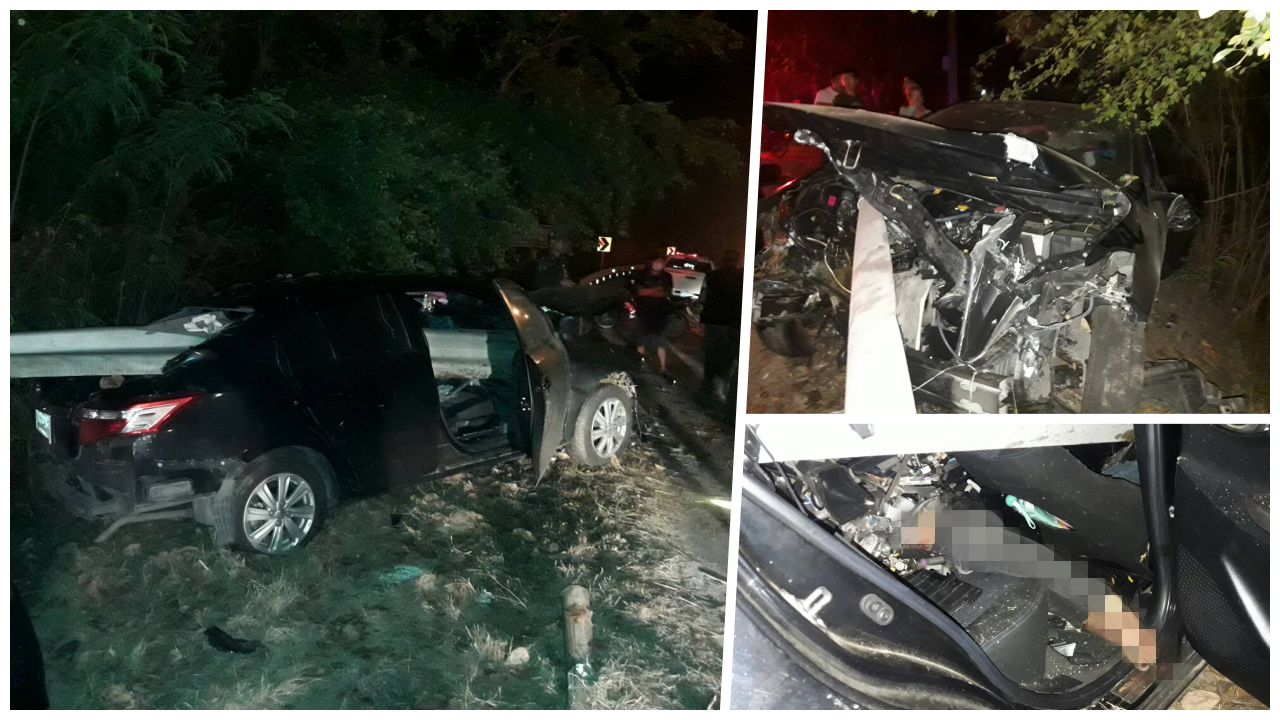 สาวสุพรรณฯ วัยเบญจเพส โชคร้ายขับรถเก๋งจะไปหาเพื่อนตอนเช้ามืด ผ่านโค้งอันตราย "วัดสามเหลี่ยม" ถนนมาลัยแมน รถหลุดโค้งชนที่กั้น ราวเหล็กแทงทะลุเข้ามาในรถ กระแทกร่างดับอนาถ