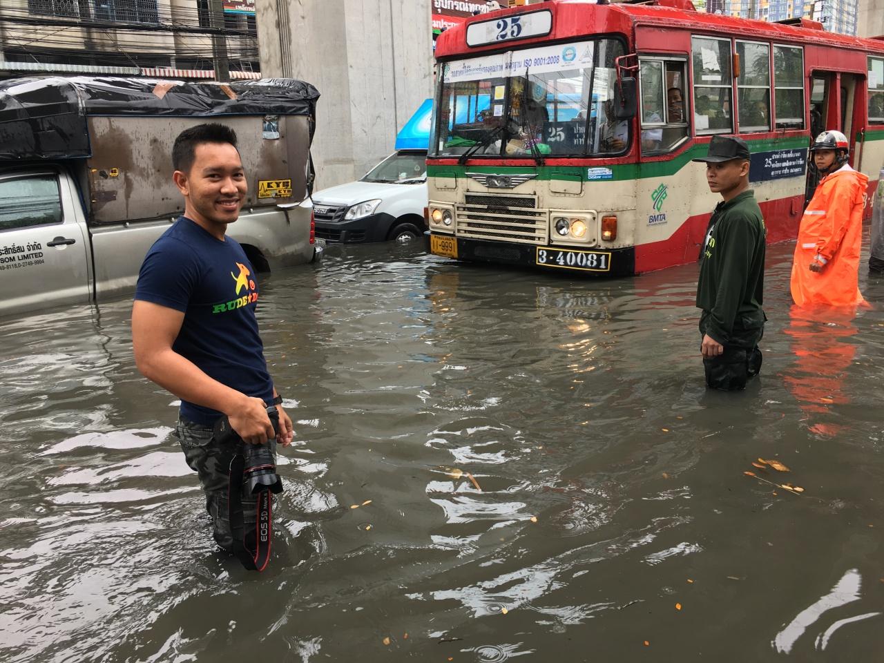 ขณะที่ทางเจ้าหน้าที่ เทศบาลตำบลสำโรงเหนือ ได้เร่งสูบน้ำลงสู่คลองสำโรงอย่างต่อเนื่อง กระทั่งเวลา 11.40 น. พบว่าฝนเบาบางลง.