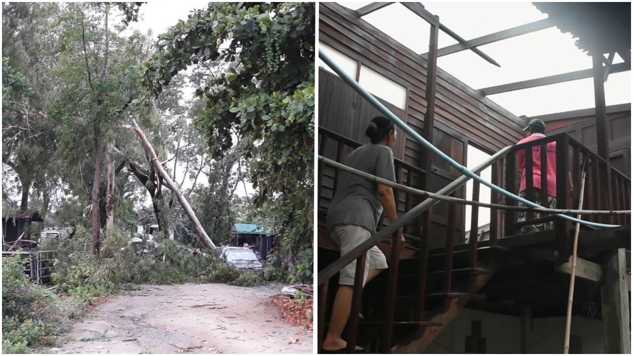 ด้านนายดนัย ท้วมเอื้อ ผู้ใหญ่บ้านหมู่ที่5 ตำบลแพรกศรีราชา เปิดเผยว่า พายุพัดถล่มในครั้งนี้ฝุ่นตลบมองอะไรไม่เห็น แล้วยังได้พัดเอาหลังคาบ้านไปถูกกับสายไฟฟ้าแรงสูง ทำให้ไฟฟ้าดับ เบื้องต้น ได้รายงานไปยังอำเภอให้รับทราบถึงความเสียหายที่เกิดขึ้น และประสานไปยังการไฟฟ้าให้เข้ามาดำเนินการซ้อมแซมให้สามารถใช้กระแสไฟได้