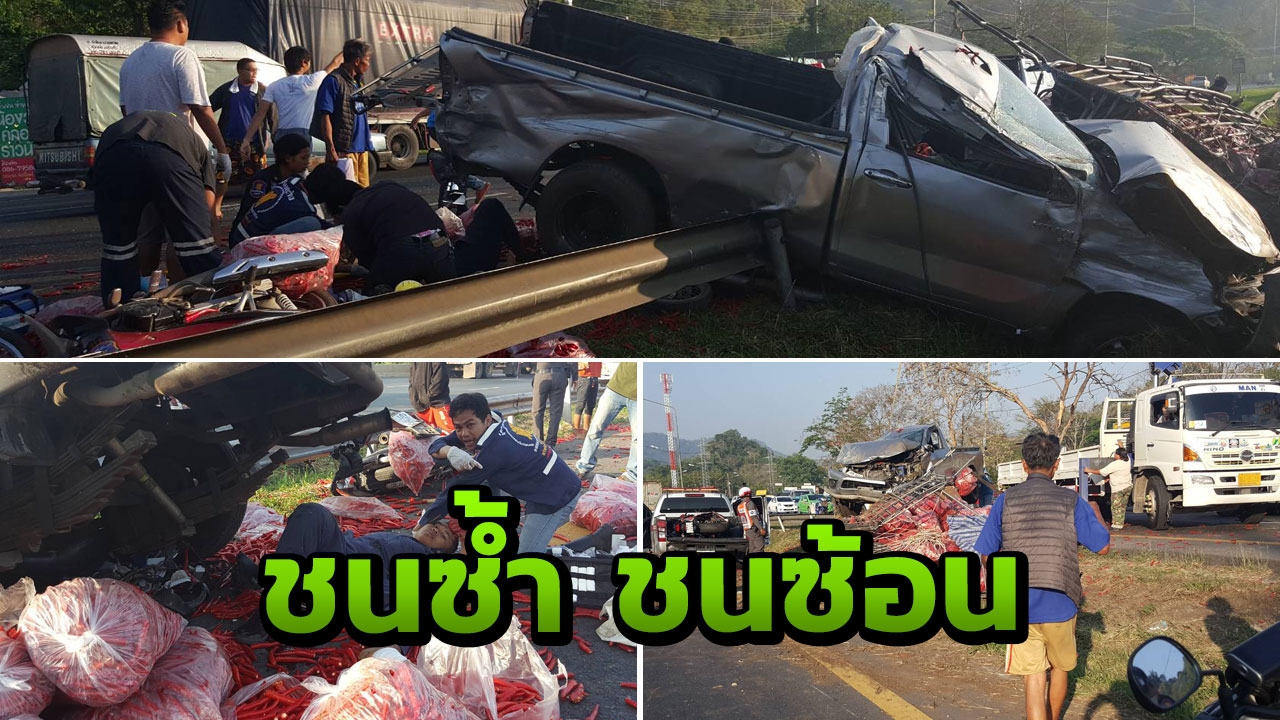 อุบัติเหตุซ้ำซ้อน รถบรรทุกพริกขี้หนูเสียหลักพลิกคว่ำ ชนเจ้าหน้าที่มูลนิธิและพลเมืองดีขณะช่วยเหลือ รถบิ๊กไบค์แหกโค้งมีคนตายที่สระบุรี ชนพลเมืองดีดับเพิ่ม 1 รวมตาย 2 บาดเจ็บสาหัส 4