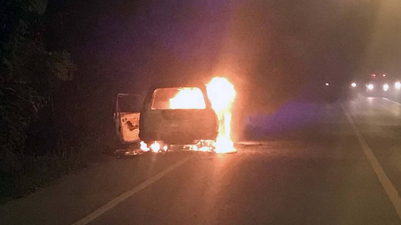 ไฟไหม้รถยนต์กระบะบนถนนสายบางสาม-บางแม่หม้าย จนท.ดับเพลิงฉีดน้ำ 15 นาทีจึงดับได้ เผย เจ้าอาวาส ให้พระลูกวัดขับออกมาลองเครื่องหลังเอาไปเข้าอู่ วิ่งได้แป๊บเดียวไฟไหม้ต้องรีบหนีออกมา...