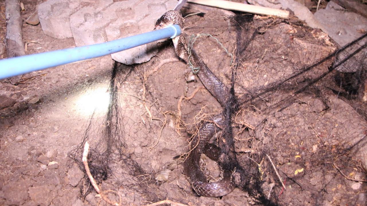 นายสมชาย เผยว่า เมื่อหลายวันก่อนพบเห็นงูเห่าจำนวนสองตัว เลื้อยเข้าออกบริเวณโพรงดังกล่าวที่อยู่ใต้ต้นไม้ และเห็นว่า จะมีงูเห่า 1 ตัวเลื้อยเข้าไปในโพรงส่วนอีกตัวจะนอนรออยู่ปากโพรง ทำให้ตนกลัวว่า คนในครอบครัวจะได้รับอันตรายจึงทำการนำตาข่ายมาครอบโพรงไว้จนมีงูเห่ามาติด ก่อนจะตัดสินใจลองขุดดินบริเวณดังกล่าวดูจนพบไข่งูและงูเห่า ที่นอนกกไข่อยู่ก่อนจะเรียกกู้ภัยมาจับ