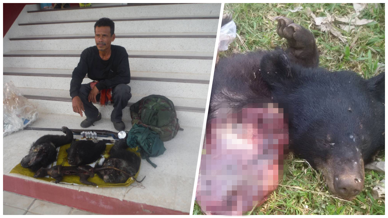 วันที่ 23 มี.ค. 61 ความคืบหน้าว่า คดีเจ้าหน้าที่อุทยานแห่งชาติกุยบุรี จับกุมตัว นายสมจิตร์ บุญกอง อายุ 52 ปี อยู่บ้านเลขที่ 12 หมู่ 12 ต.อ่าวน้อย อ.เมืองประจวบคีรีขันธ์ ส่วนอีกคนวิ่งหนีการจับกุมไปได้ โดยตรวจพบซากหมีควาย สัตว์ป่าคุ้มครอง ถูกฆ่าและชำแหละซากเหลือเพียงชิ้นส่วนขาพร้อมอุ้งตีนหมี 2 ข้าง หัวหมี และซากชะมดเช็ด นำส่งพนักงานสอบสวน สภ.อ่าวน้อย อ.เมืองประจวบคีรีขันธ์ ดำเนินคดีไปตั้งแต่วันที่ 16 มี.ค. 61 ที่ผ่านมานั้น