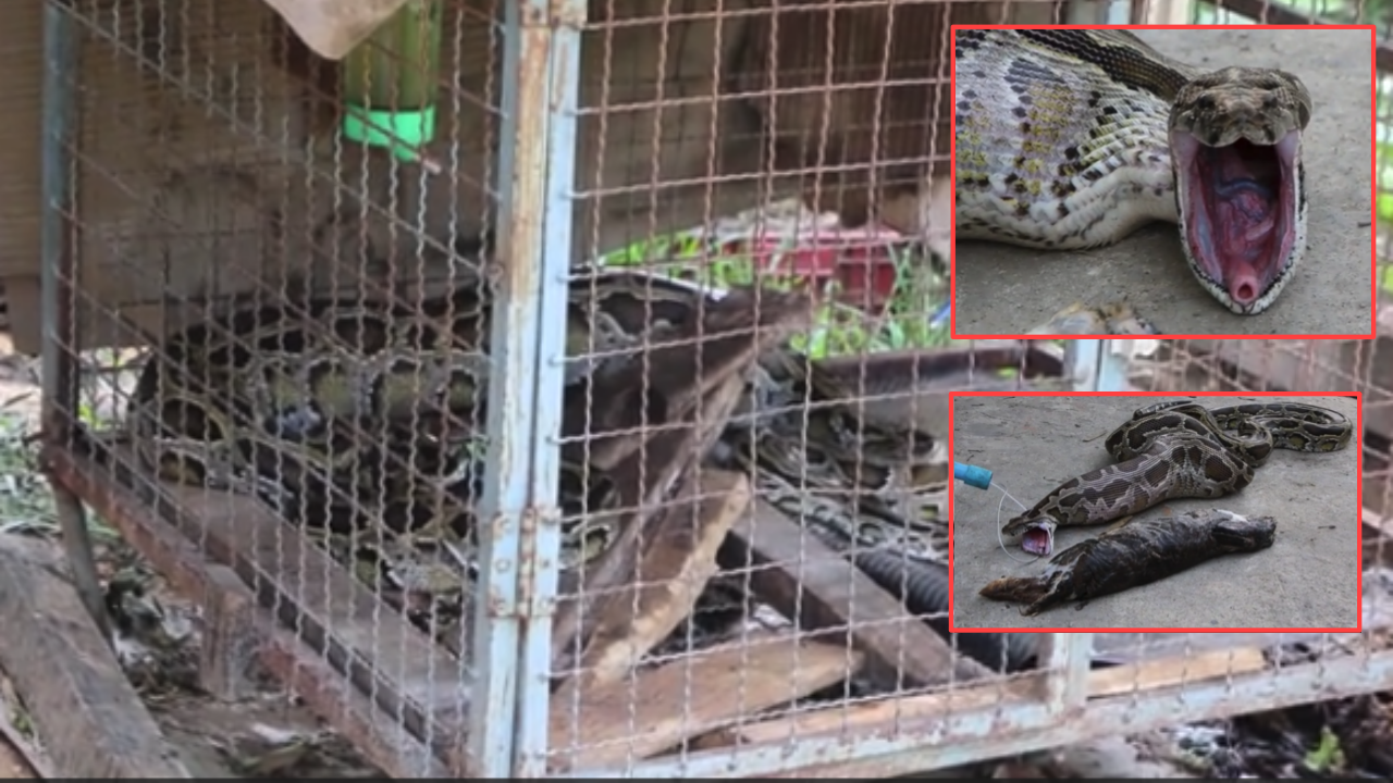 สารพัดงูมาชุมนุมกันอยู่ที่บางปะกง ล่าสุด งูหลามยาว 2 เมตร เลื้อยเข้าไปกินกระต่าย เขมือบ 2 ตัว อิ่มพุงกาง เลื้อยหนีไม่ได้ เจ้าของมาดูที่กรงตอนเช้า ช็อก กระต่ายหายกลายเป็นงูหลามนอนขดอยู่แทน