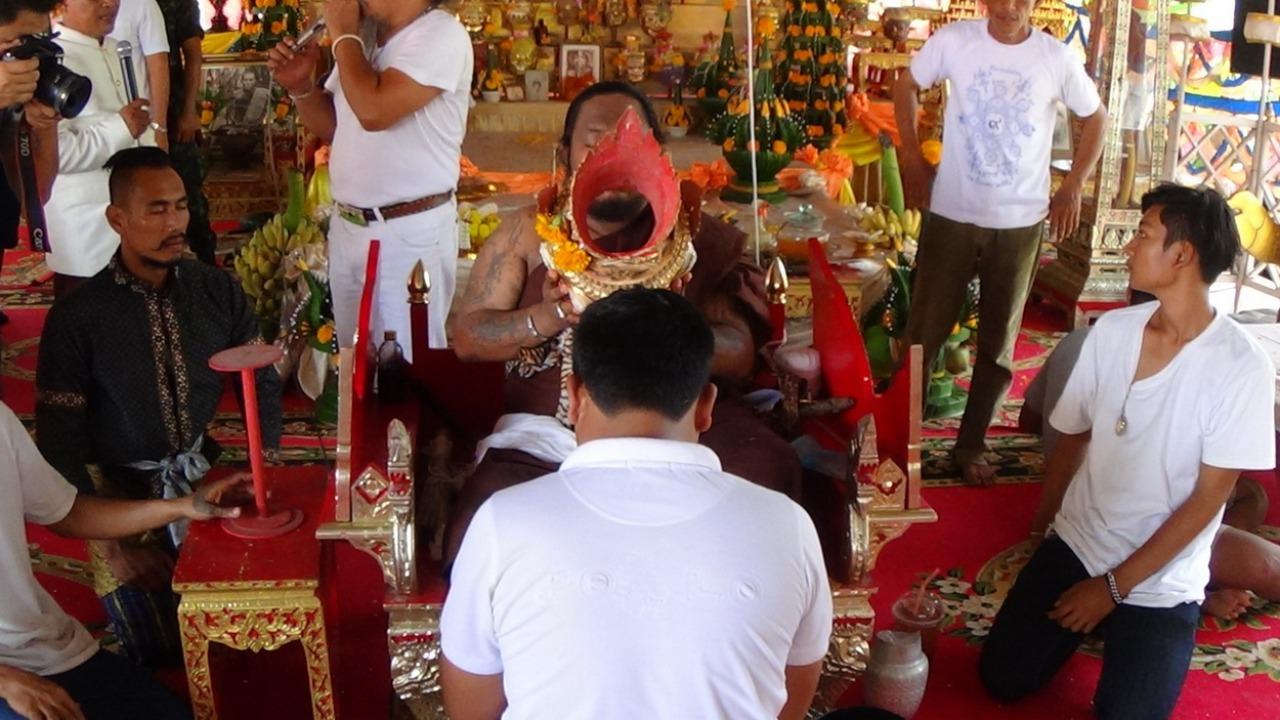 สำนักสักยันต์ อ.บอย อ่างทองแทบแตกหลังมีการจัดพิธีไหว้ครู ครอบเศียรครู ศักดิ์สิทธิ์จนชาวต่างชาติต้องเดินทางกลับมาร่วมงานไหว้ครูทุกปี ด้านลูกศิษย์เกิดของขึ้นต้องไล่จับให้สงบ...