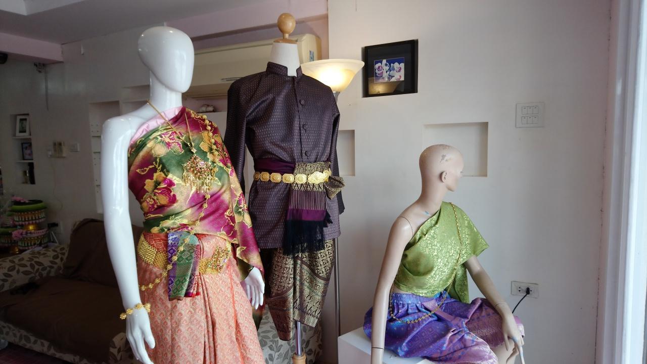 บรรยากาศ การเช่าชุดไทยที่ร้านเจ้าสาว ถนนประจวบศิริ ในอำเภอเมืองประจวบคีรีขันธ์ จ.ประจวบคีรีขันธ์ มีลูกค้าเข้าร้านอย่างต่อเนื่อง ทั้งเลือกแบบชุดไทย หรือสั่งตัดใหม่เป็นกรณีพิเศษ โดยให้เจ้าของร้านเป็นผู้ออกแบบให้ ลูกค้าหลายรายเช่าชุดไทยทั้งชุด ขณะที่บางรายเลือกเช่าเพียงแค่เสื้อ บางรายเช่าผ้าโจงกระเบน หรือรายที่แต่งกายออกงาน เลือกแต่งเต็มครบทั้งเสื้อผ้าหน้าผม โดยมีบริการรับแต่งหน้าและทำผมอีกด้วย