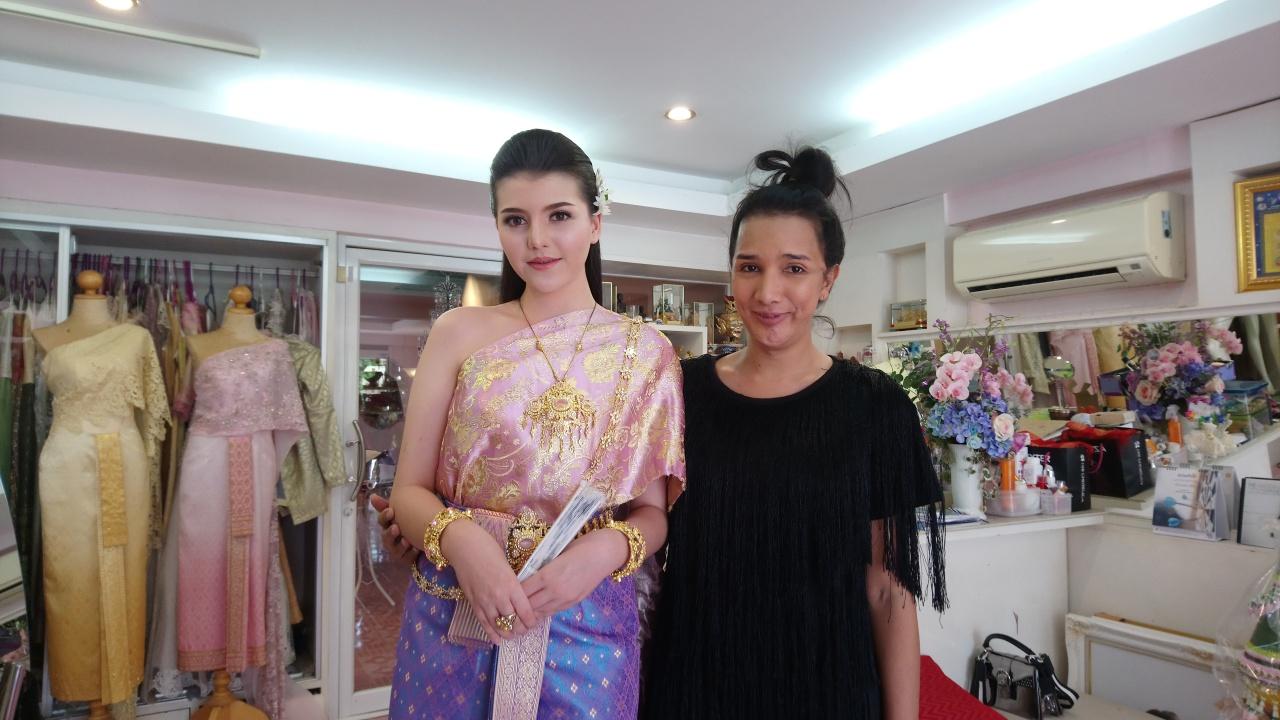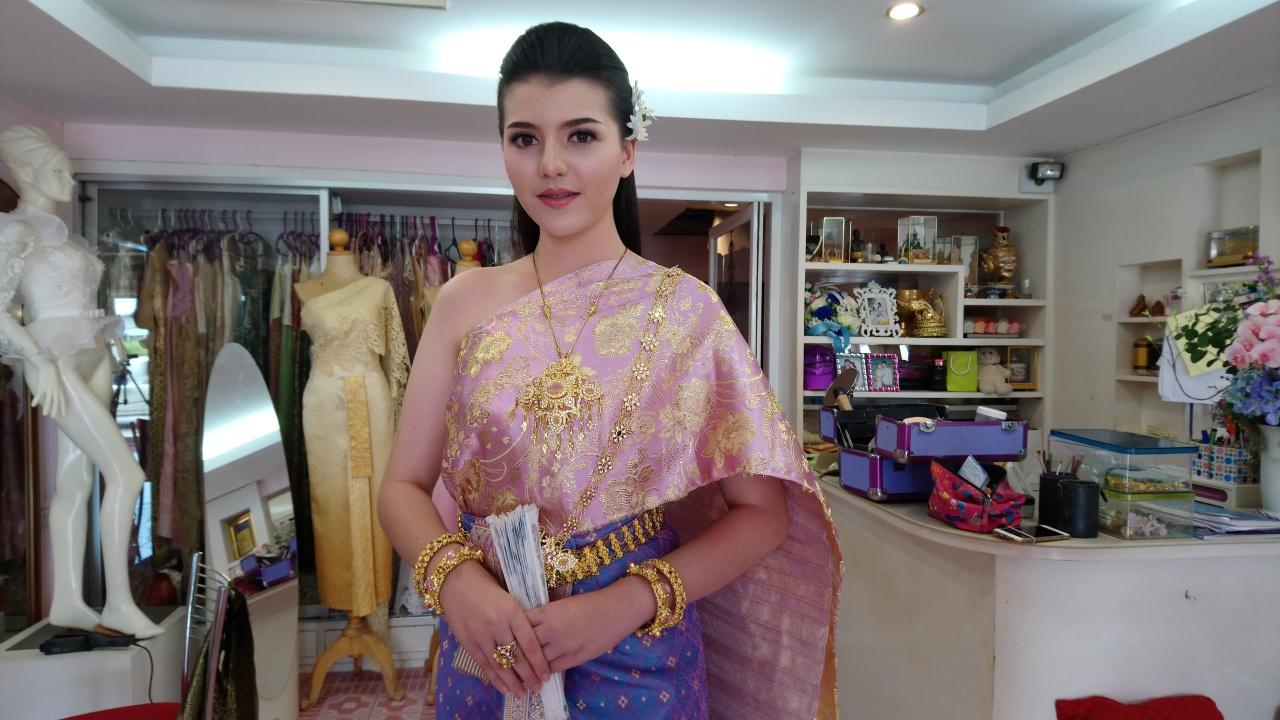 น.ส.ศิริมณี เนาแมน หรือ น้องไพลิน อายุ 20 ปี ลูกครึ่งไทยเยอรมัน นางงามประจวบคีรีขันธ์ ปี 2559 ลูกค้าประจำร้านเจ้าสาว กล่าวว่า วันนี้มานุ่งชุดไทยสไบโบราณตามสมัยนิยม ซึ่งเป็นชุดในสมัยสมเด็จพระนารายณ์มหาราช มาในโทนสีชมพูม่วง ซึ่งชุดนี้เป็นชุดที่ทางร้านตัดให้ใหม่ โดยวันนี้มาแต่งตัวเพื่อไปออกงานที่อำเภอหัวหิน