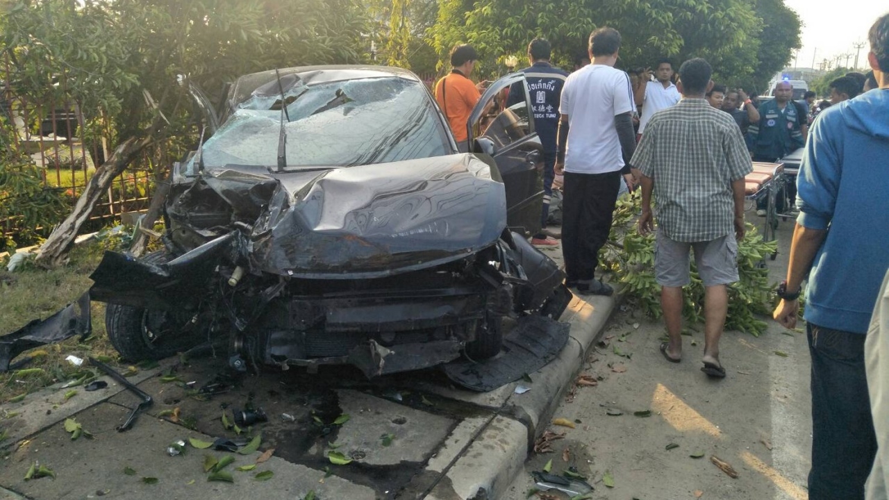 ที่เกิดเหตุ เป็นถนน 4 เลน รถวิ่งสวนทางกันบริเวณโค้งด้านหน้าโรงงานบนฟุตปาท พบรถยนต์เก๋ง ยี่ห้อโตโยต้า รุ่นวีออส สีดำ หมายเลขทะเบียน ชท 2416 กทม.จอดอยู่ในลักษณะหน้ารถพังยับเยิน กระจกหน้ารถแตกละเอียด ภายในรถพบผู้บาดเจ็บ จำนวน 1 ราย ทราบชื่อภายหลัง นายธีระดล จิตรจันทึก อายุ 24 ปี นักศึกษาชั้นปีที่ 1 สาขา/วิชาเอกวิทยุกระจายเสียงและวิทยุโทรทัศน์ มหาวิทยาลัยราชภัฏธนบุรี อยู่บ้านเลขที่ 294/11 ม.1 ต.ในคลองบางปลากด อ.พระสมุทรเจดีย์ จ.สมุทรปราการ อาการสาหัส เจ้าหน้าที่กู้ภัยเร่งปฐมพยาบาลเบื้องต้น ก่อนส่งรักษาต่อที่โรงพยาบาลกรุงเทพพระประแดง